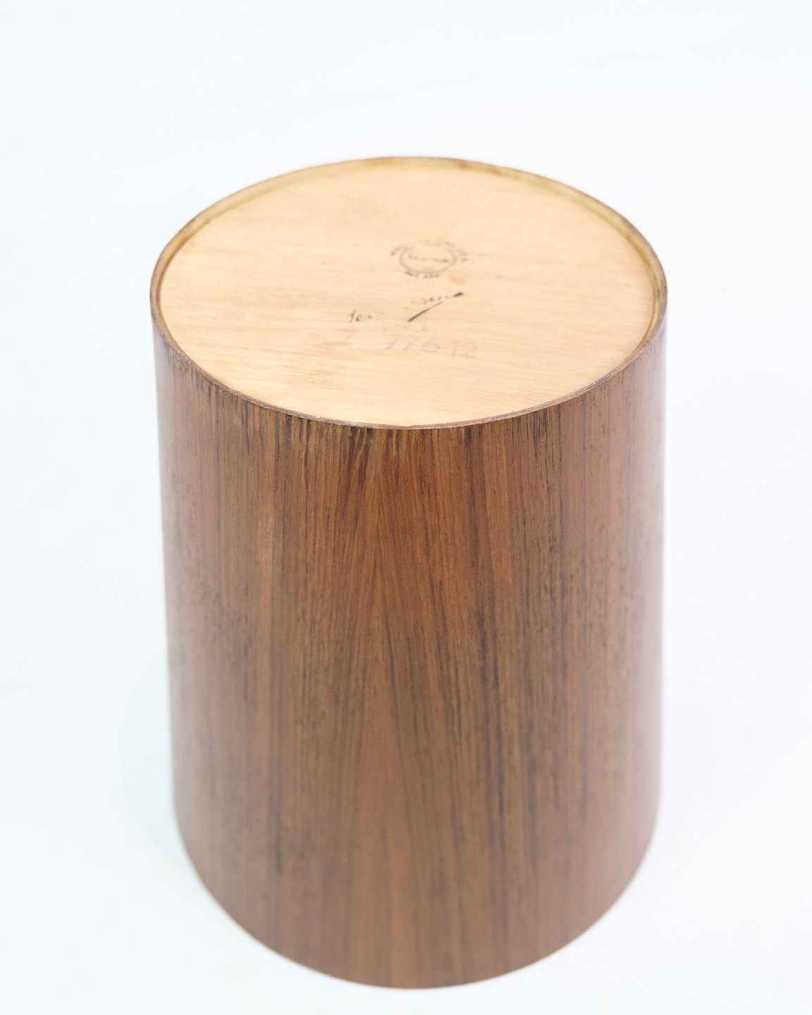 Teaktræets varme toner giver en subtil elegance til denne praktiske genstand. Designet, typisk for svensk design fra 1960'erne, er præget af rene linjer og funktionelt formsprog. Papirkurven viser også den håndværksmæssige omhu, der var karakteristisk for den nordiske designtradition.