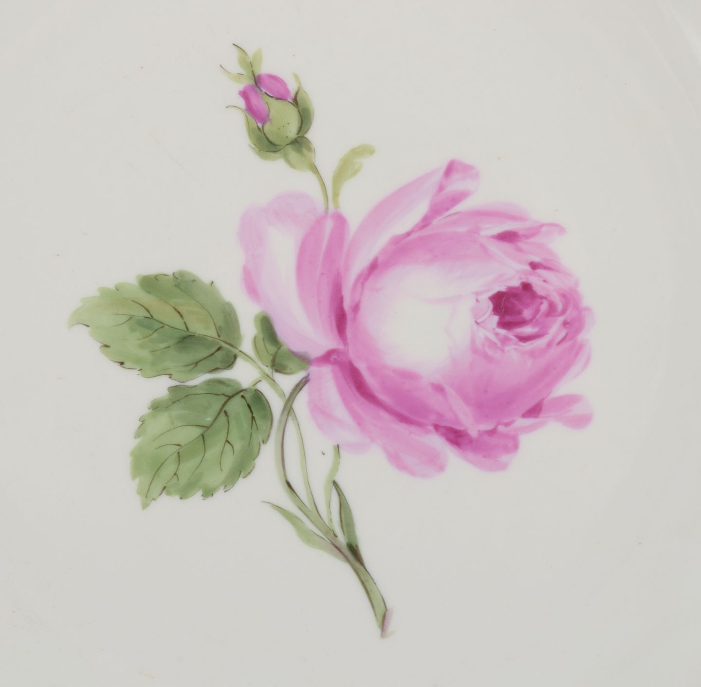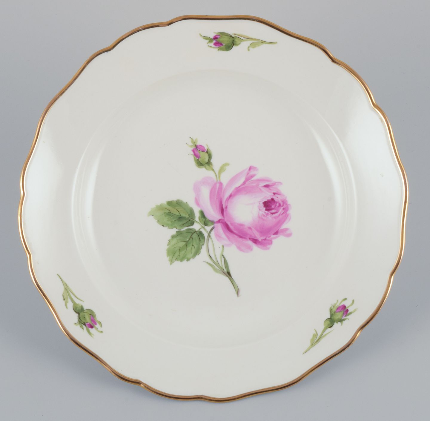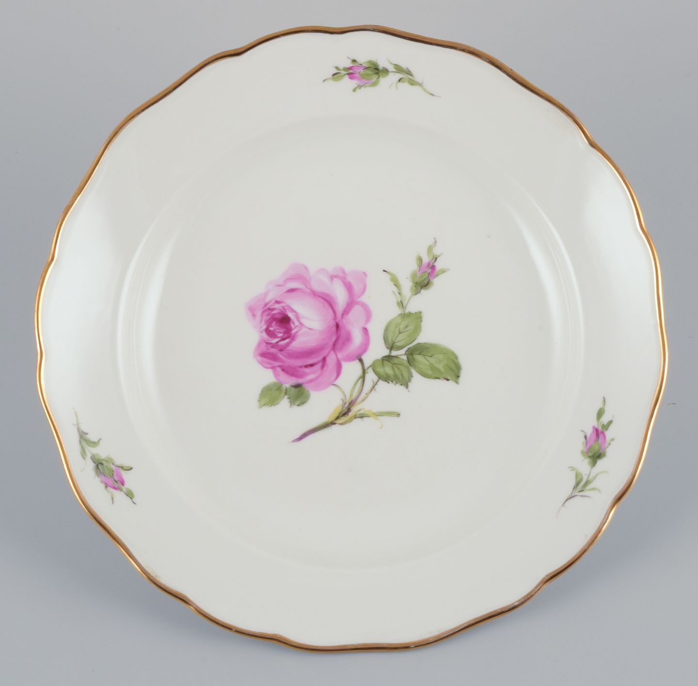 Håndmalet med lyserøde roser, guldkant.