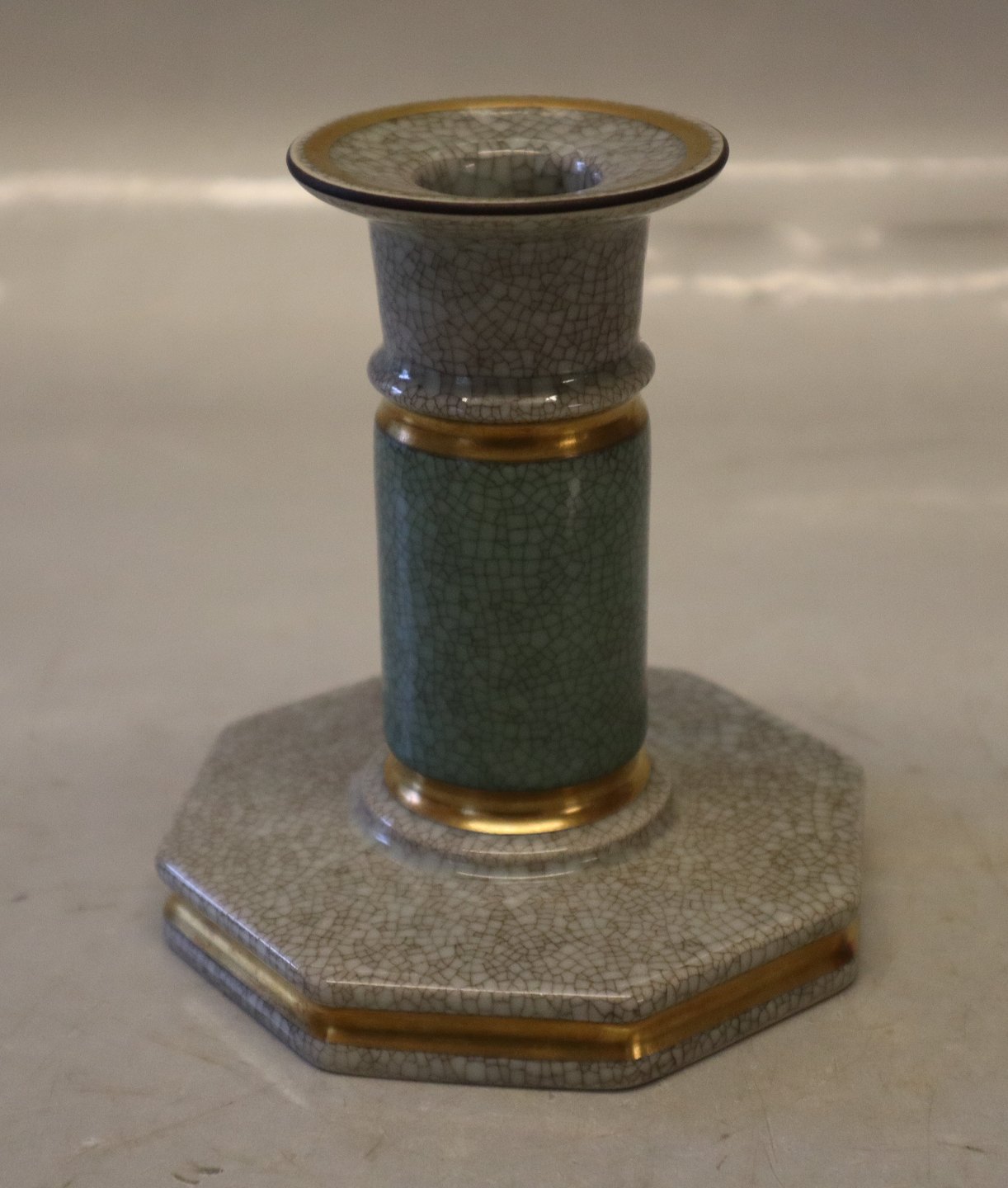 458-3303 Kgl. Lysestager grøn, grå og guld  10,5 cm Kgl. Craquelé fra Royal Copenhagen I hel og fin stand