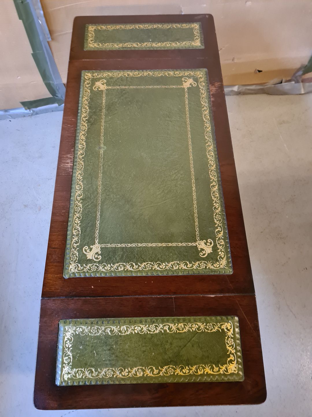 Lampebord i fineret mahogni, fra 1980erne.