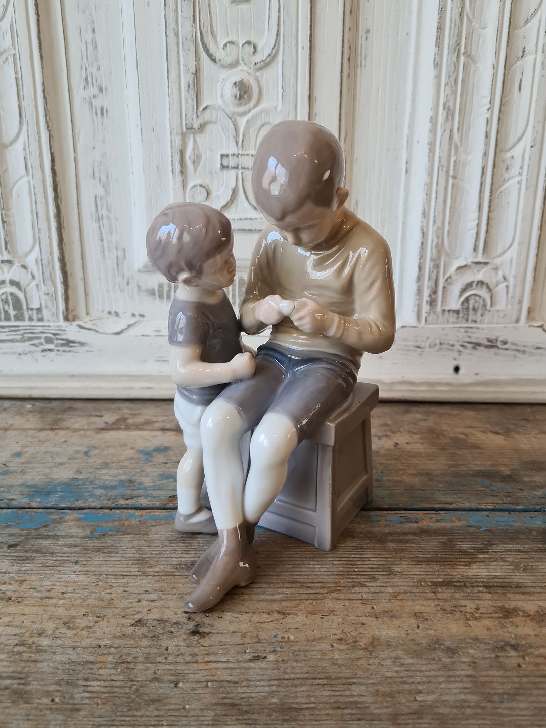 B&G figur no. 1648 - Tom & Willy - tidlig udgave i brune og grå farver. Produceret mellem 1915-48