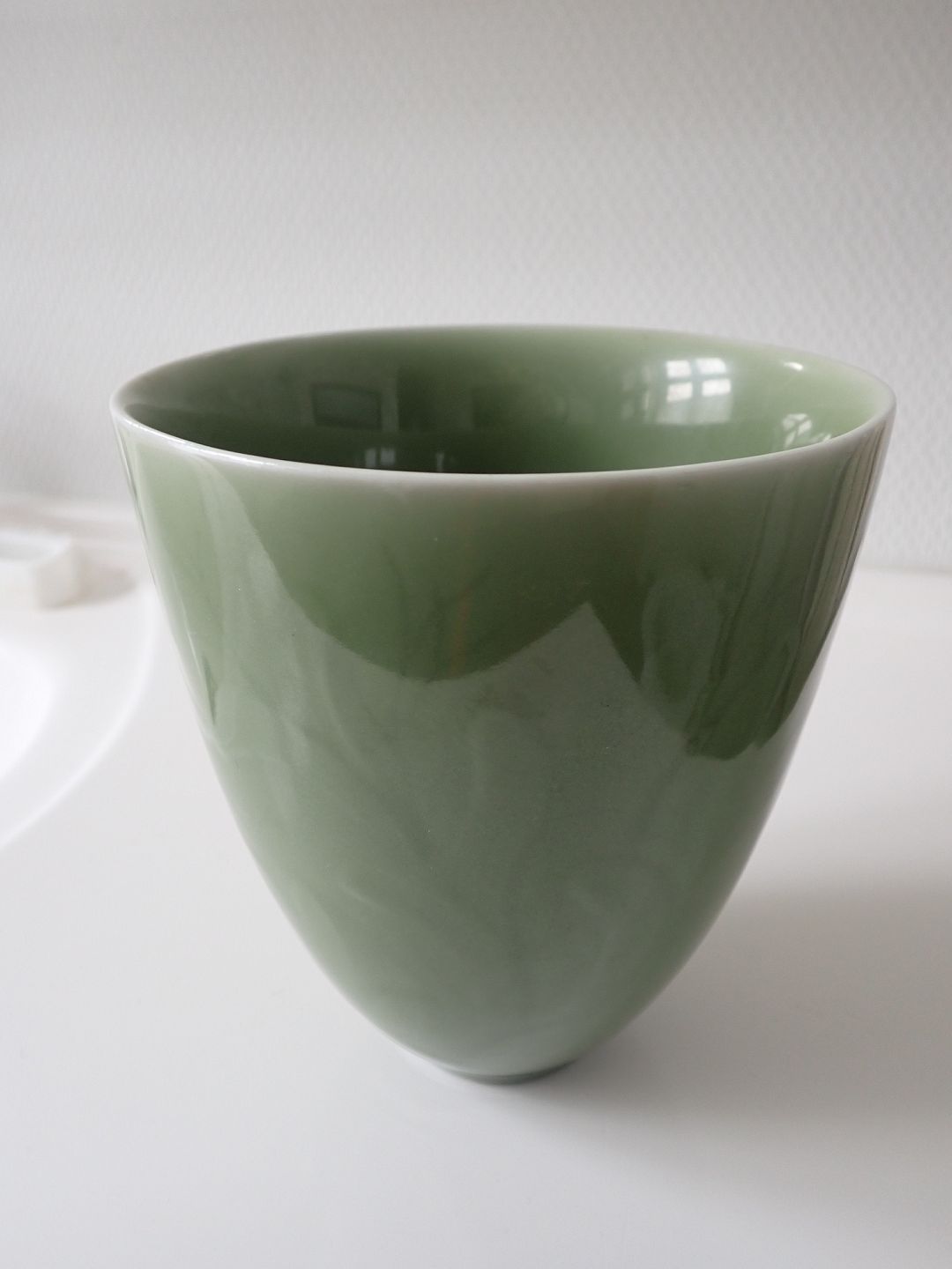 Gerd Bøgelund, Kgl. - stentøjsvase med grøn celadonglasur.