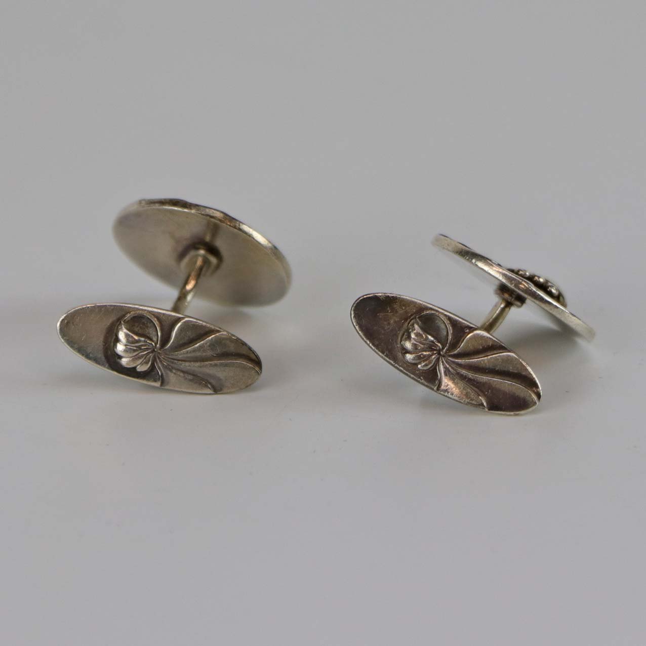 Runde manchetknapper i sterling sølv med navnet Nautilus. Nr. 53