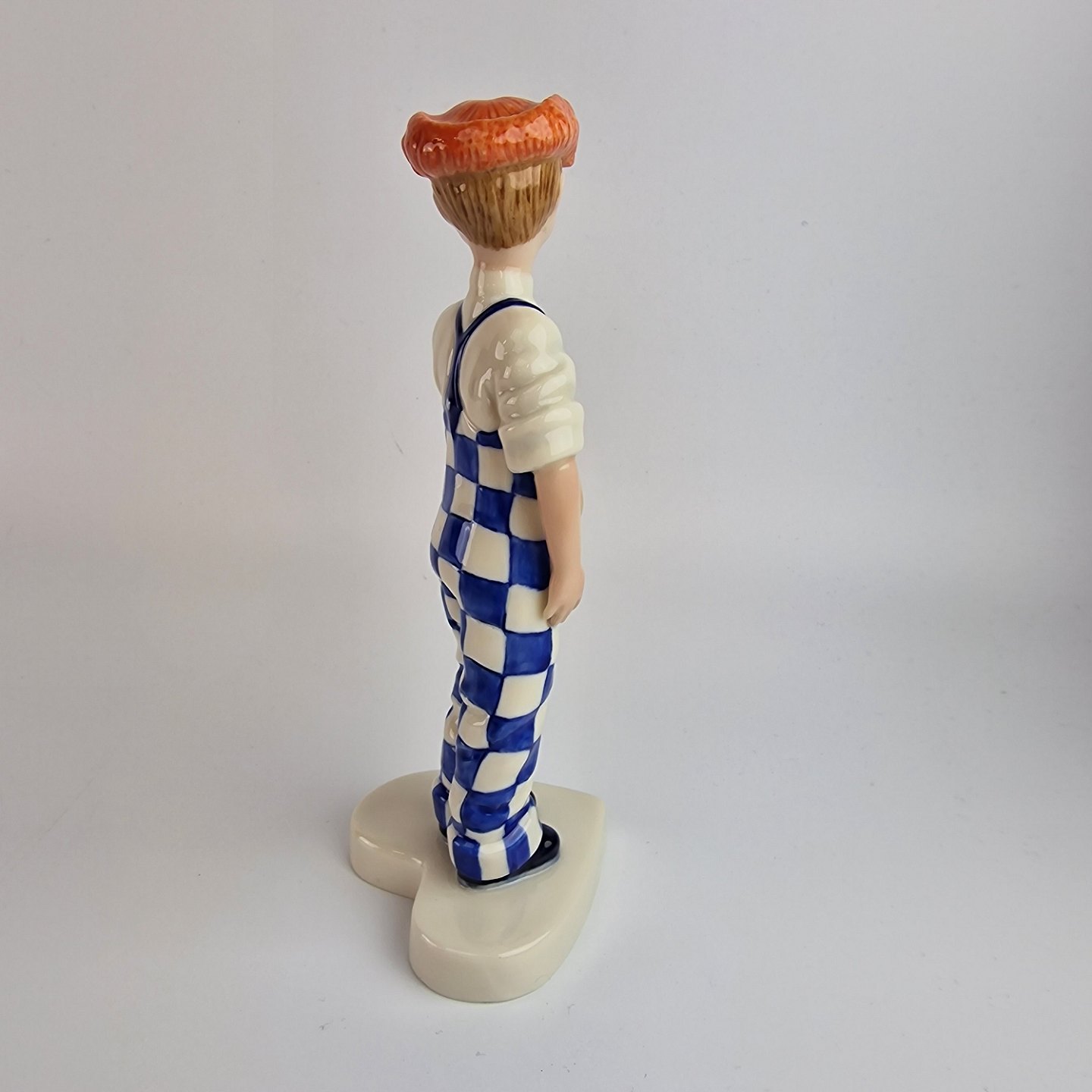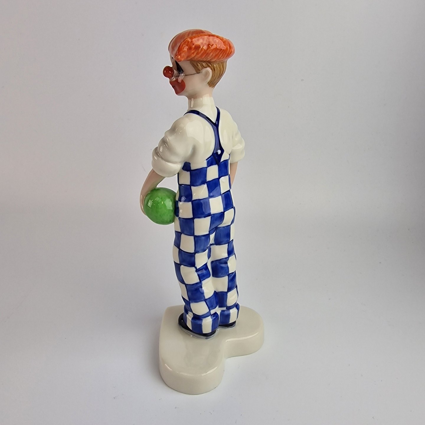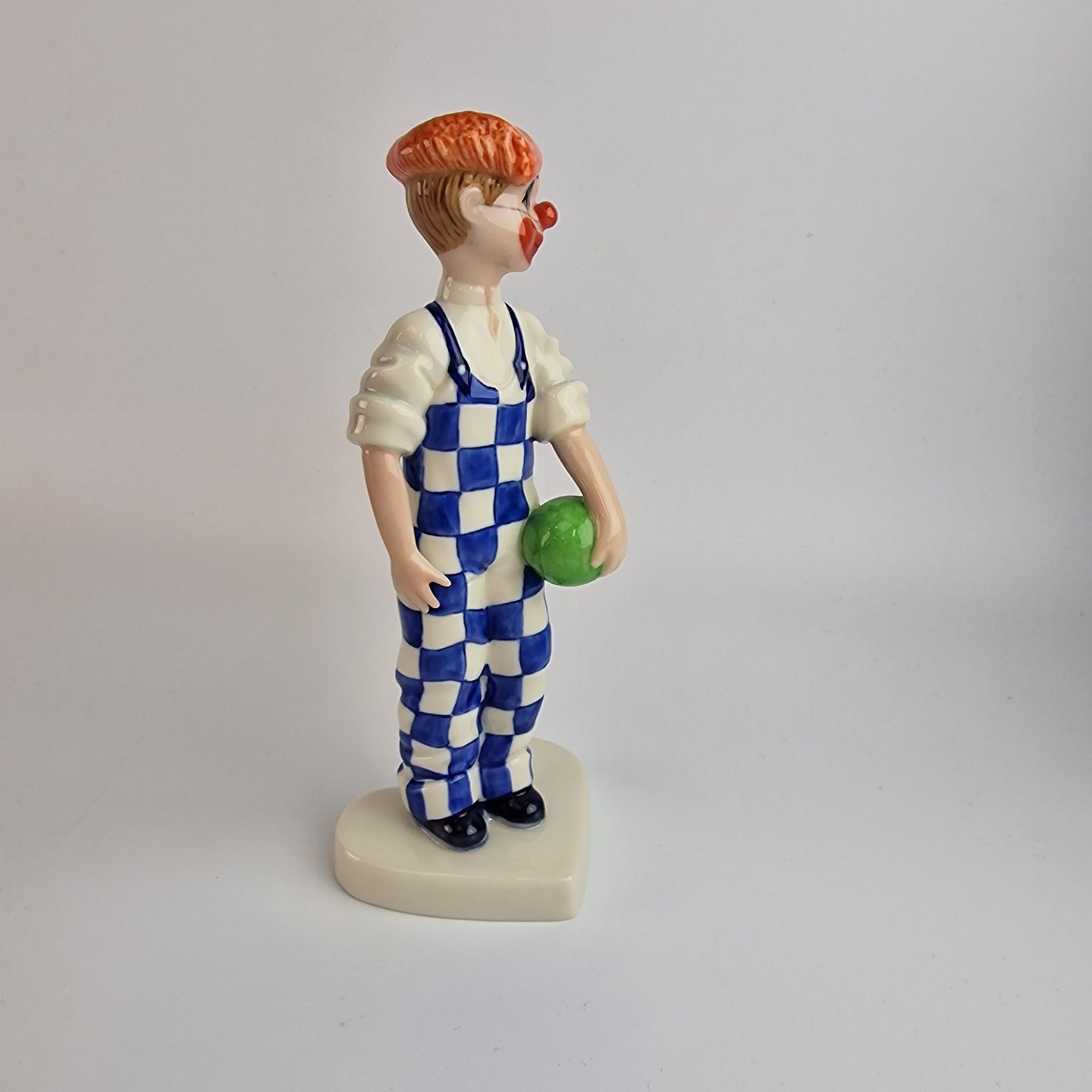 Porcelænsfigur formet som en klovn med ternet bukser og rød næse