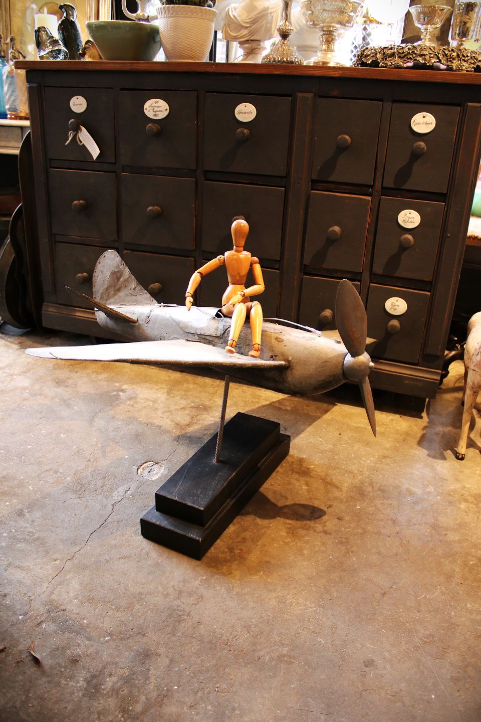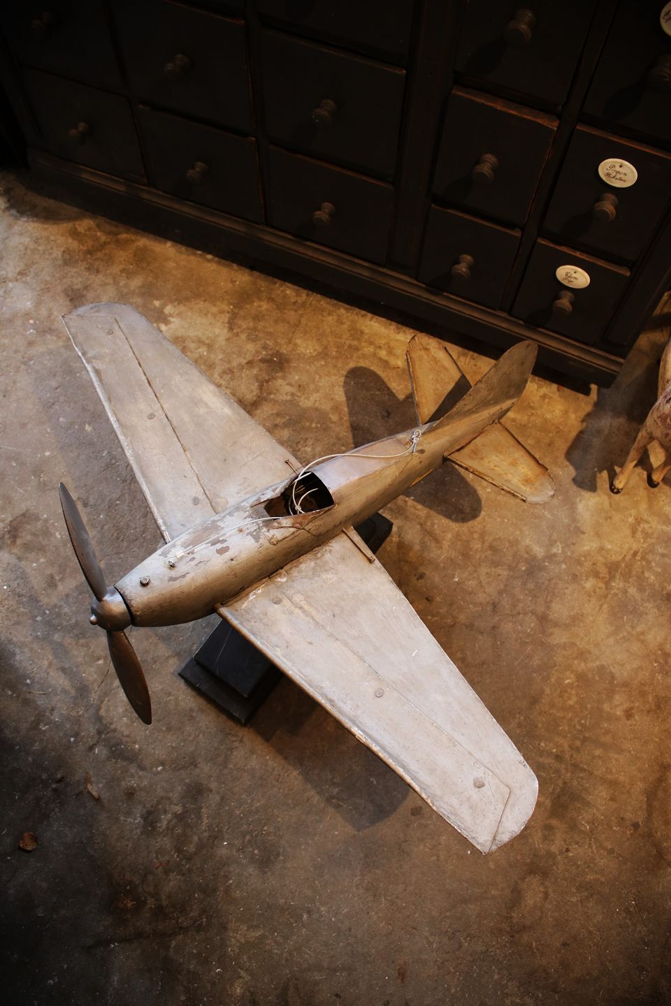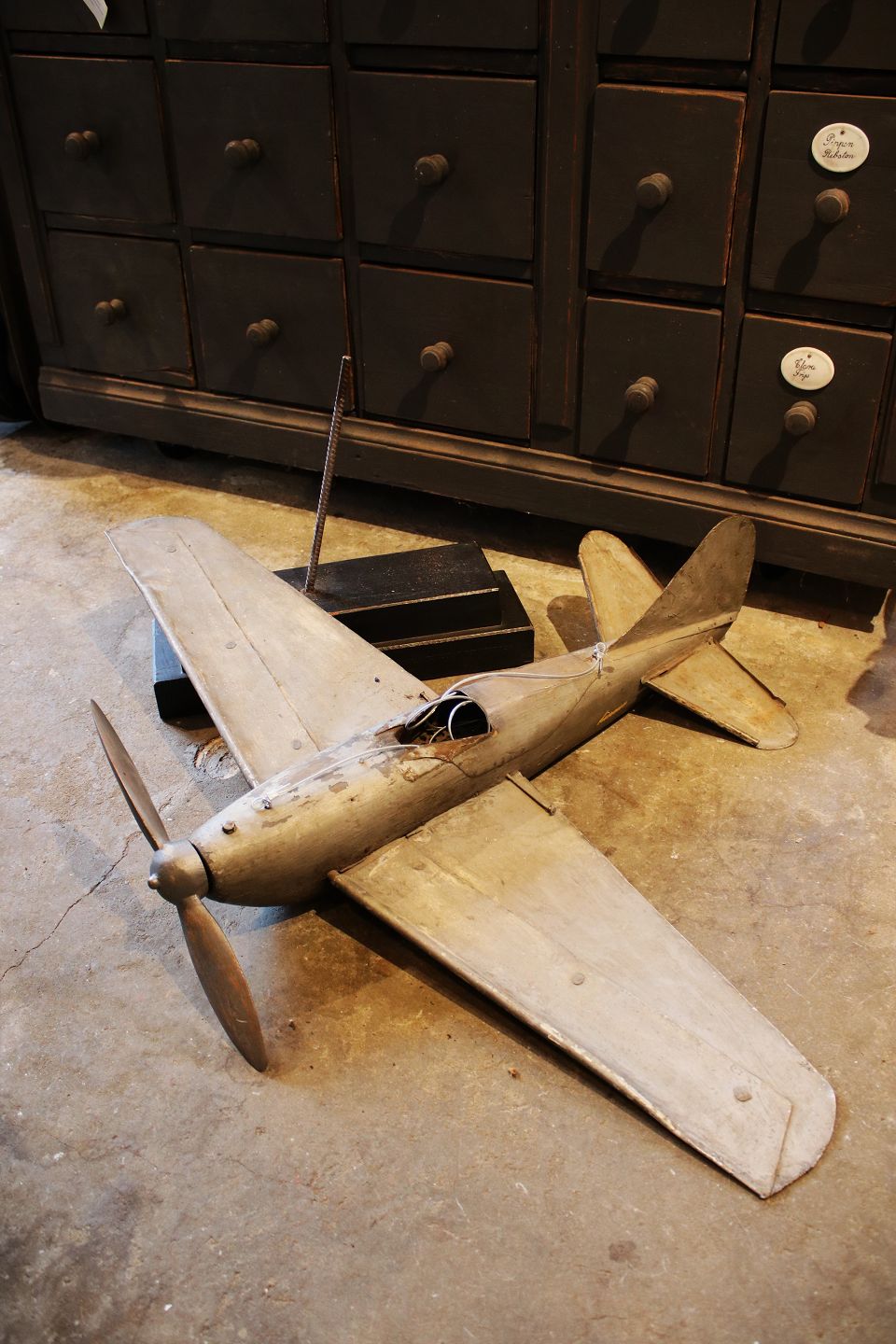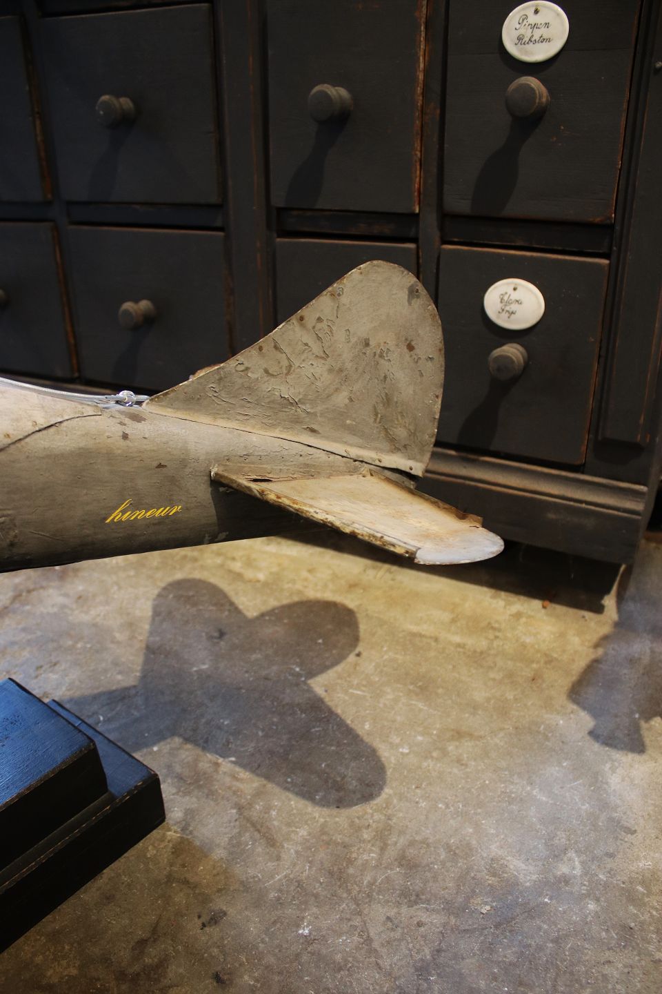 Dekorativt model fly fra 30érne i træ og metal med en rigtig fin patina.