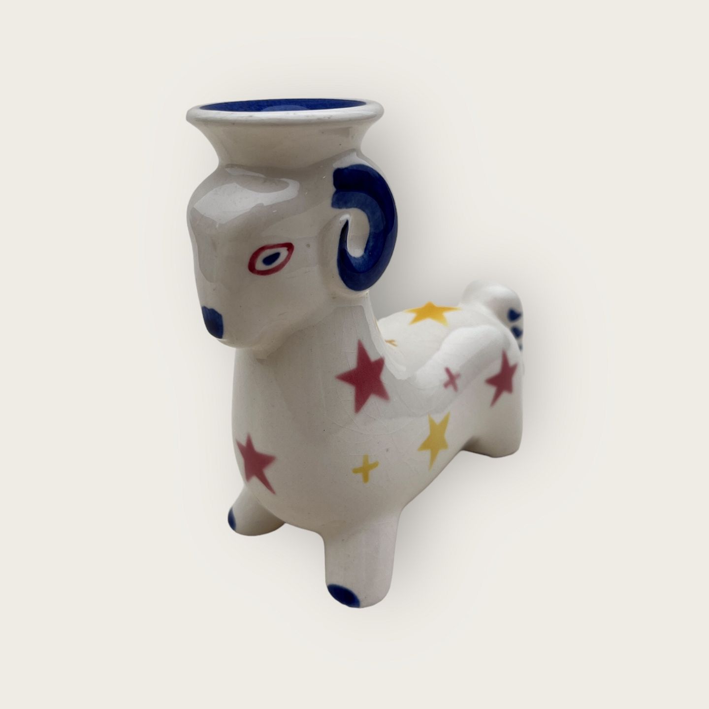 Royal Copenhagen, Aluminia, Christmas goat with stars, 11cm wide, 10cm high, Design Kaj Lange *Nice condition with some cracking*