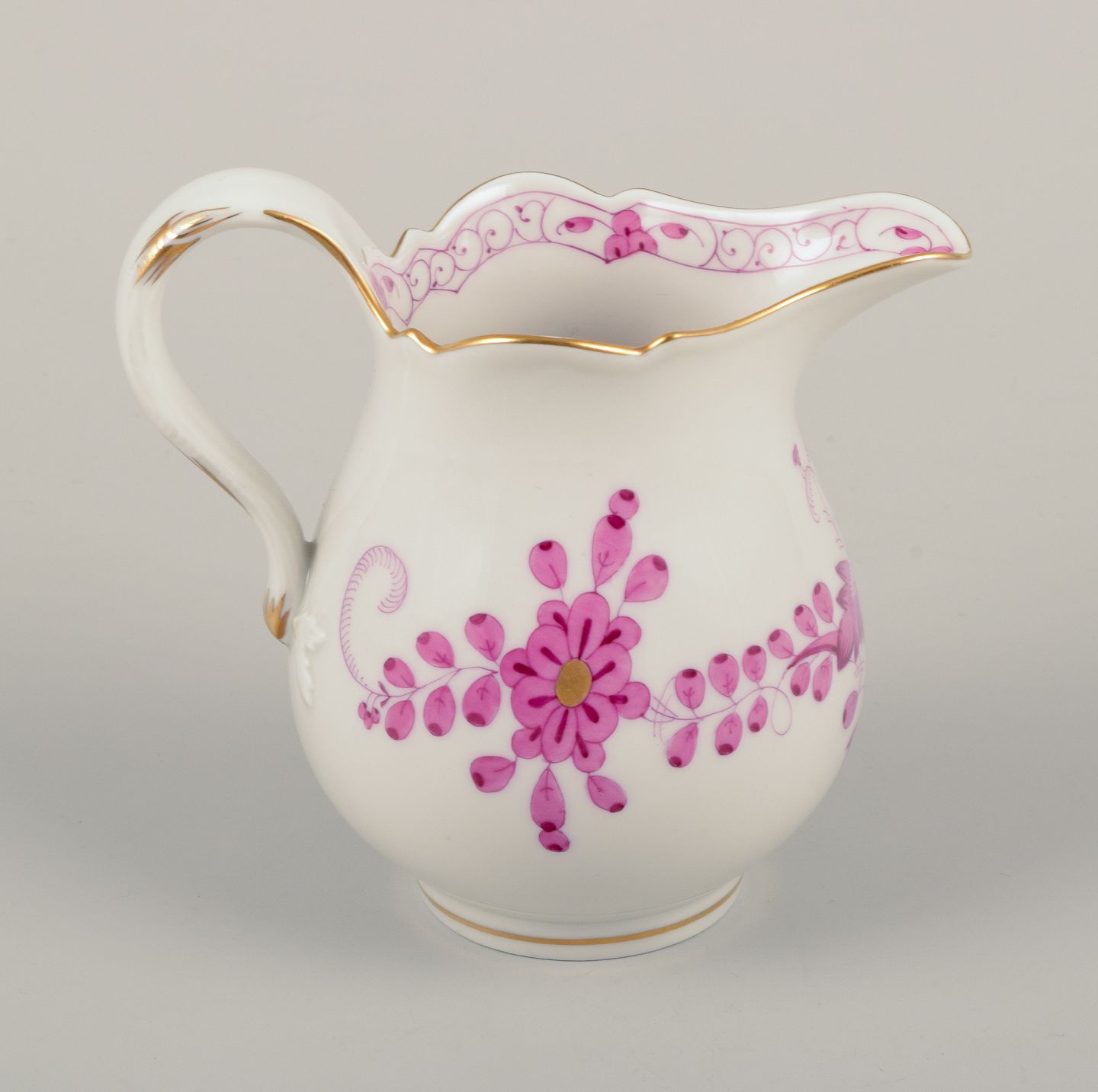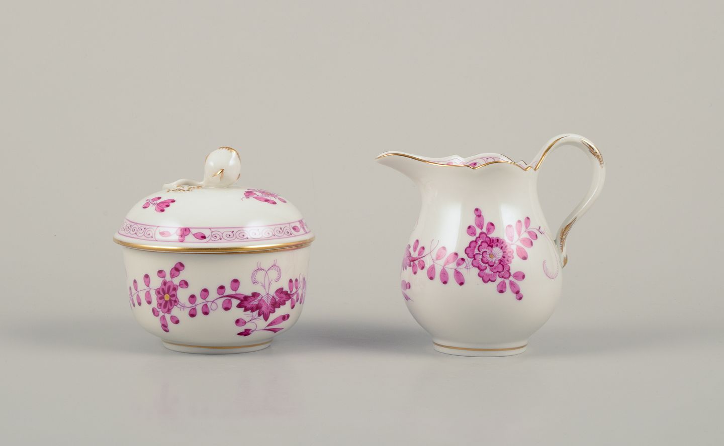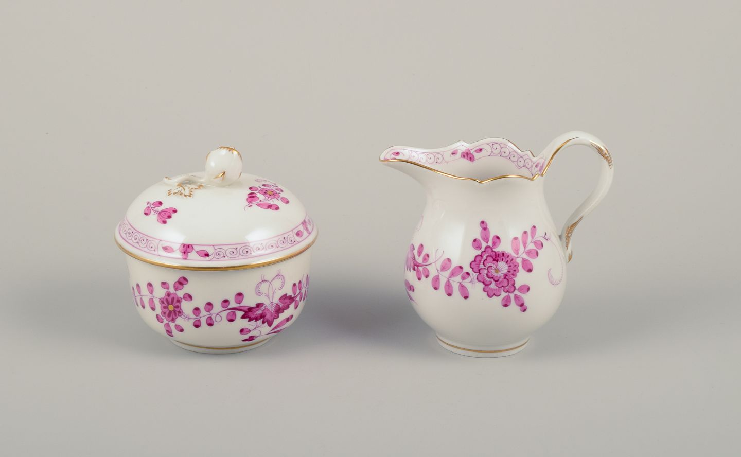 En ”Pink Indian” flødekande samt sukkerskål i porcelæn.
