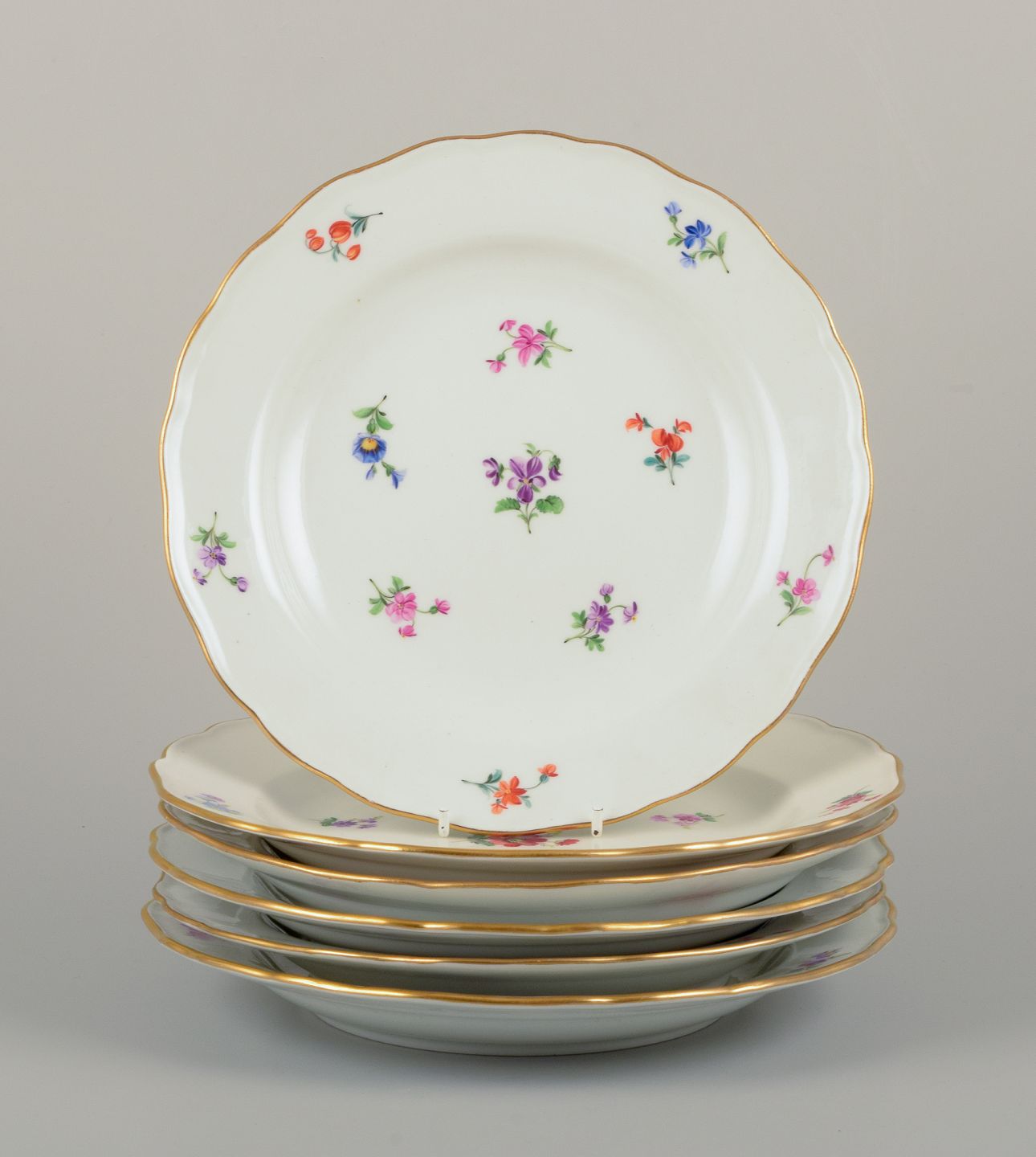 Håndmalet med polykrome blomstermotiver, guldkant.