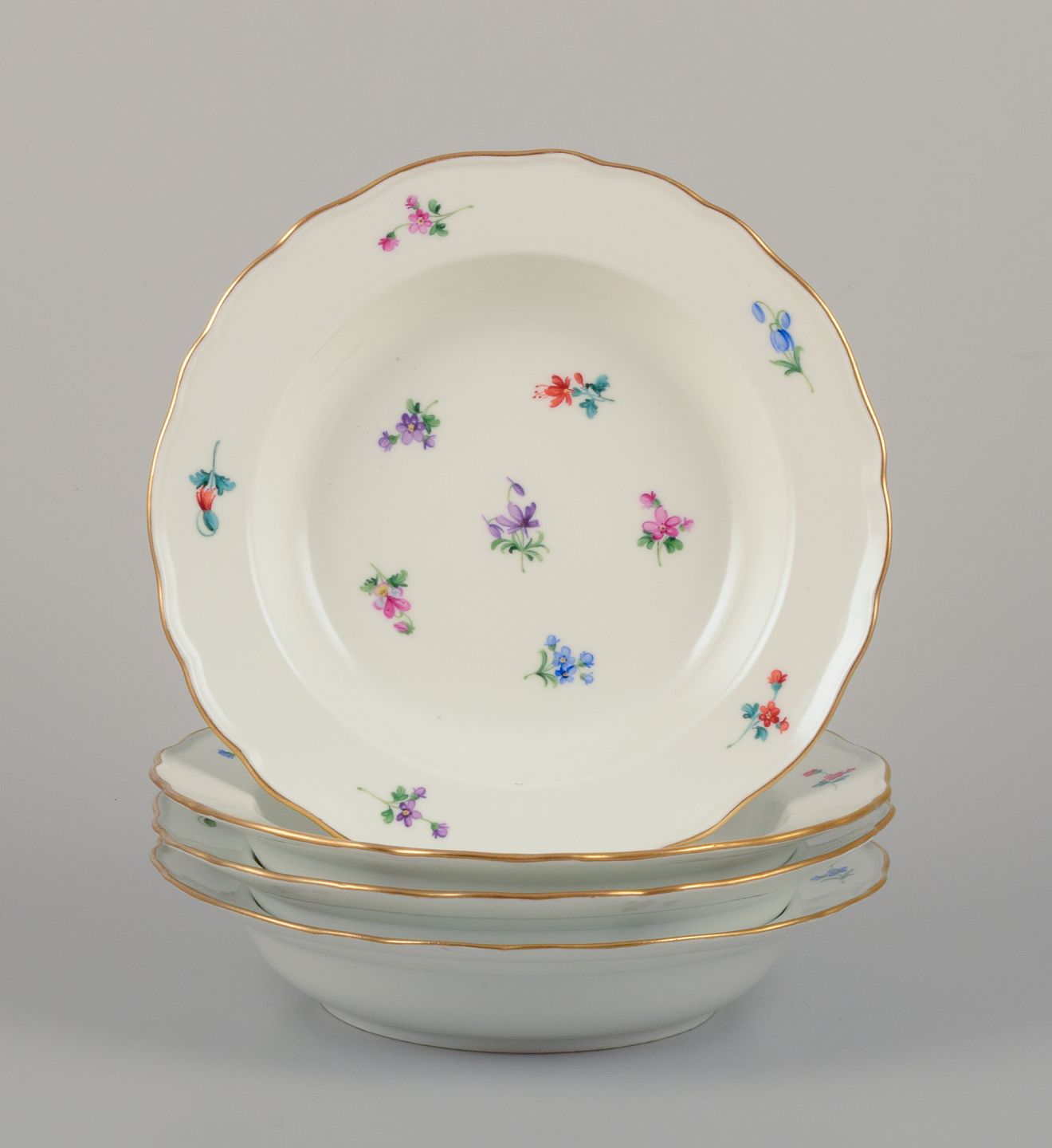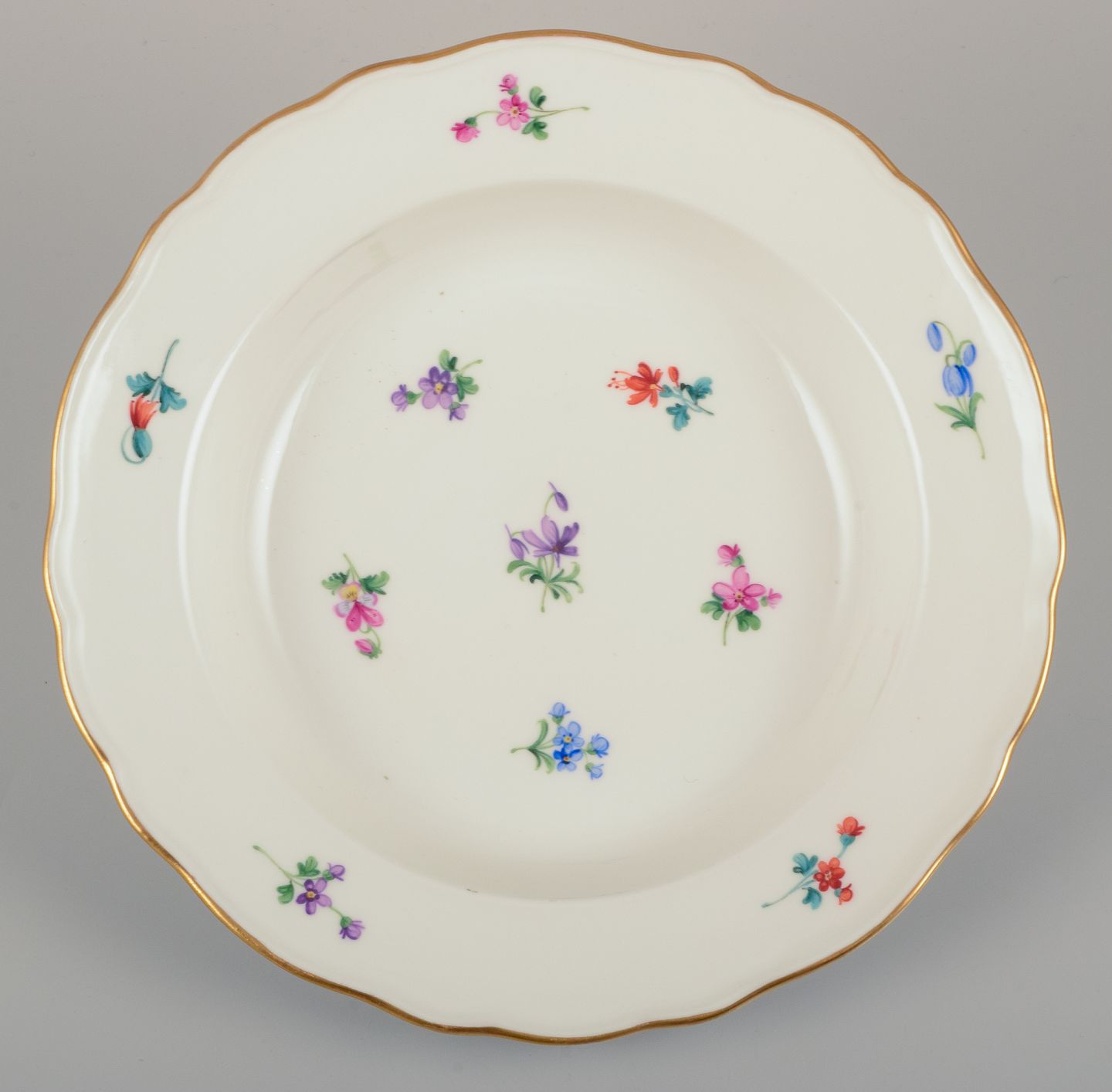 Håndmalet med polykrome blomstermotiver, guldkant.