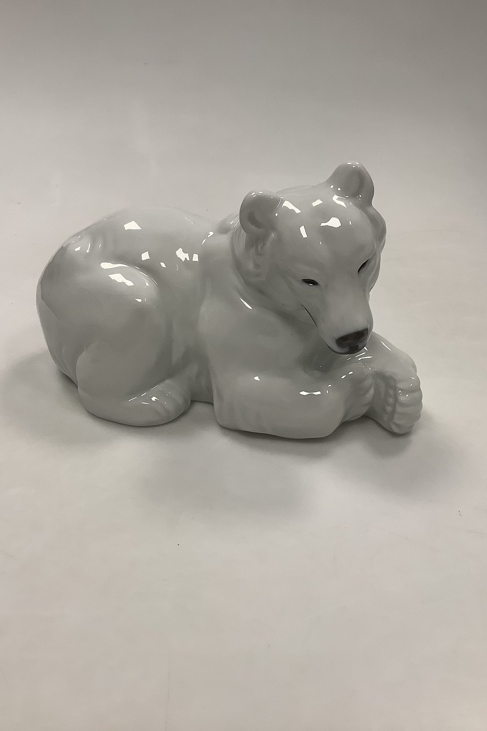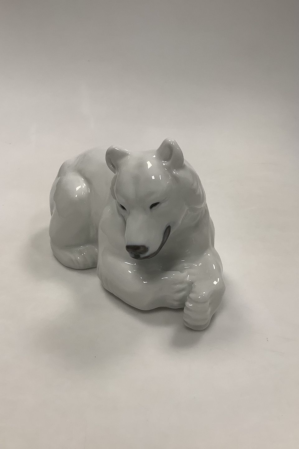 Royal Copenhagen Figur Bjørnemor/ Liggende hvid Bjørn No. 238 / 21520. Designet af Knud Kyhn.