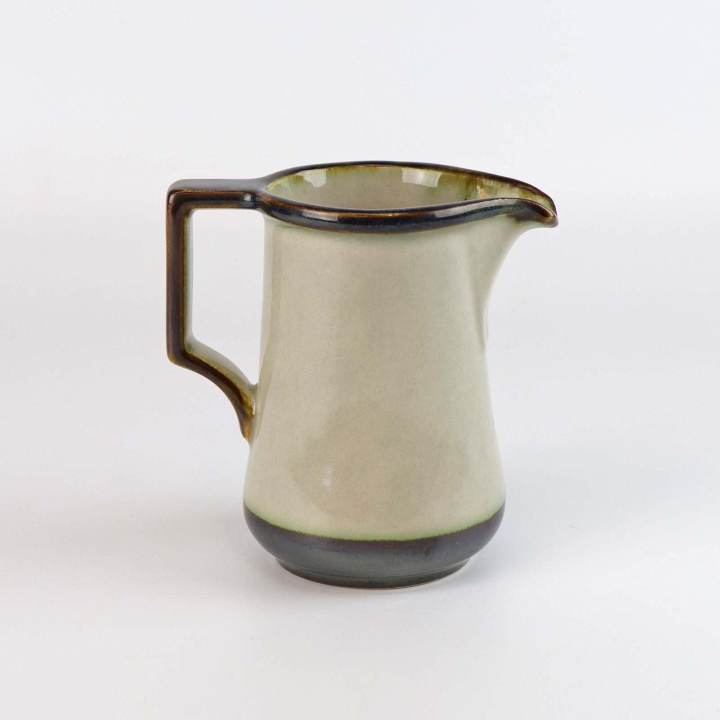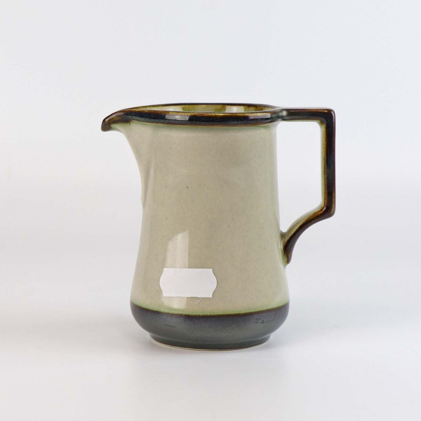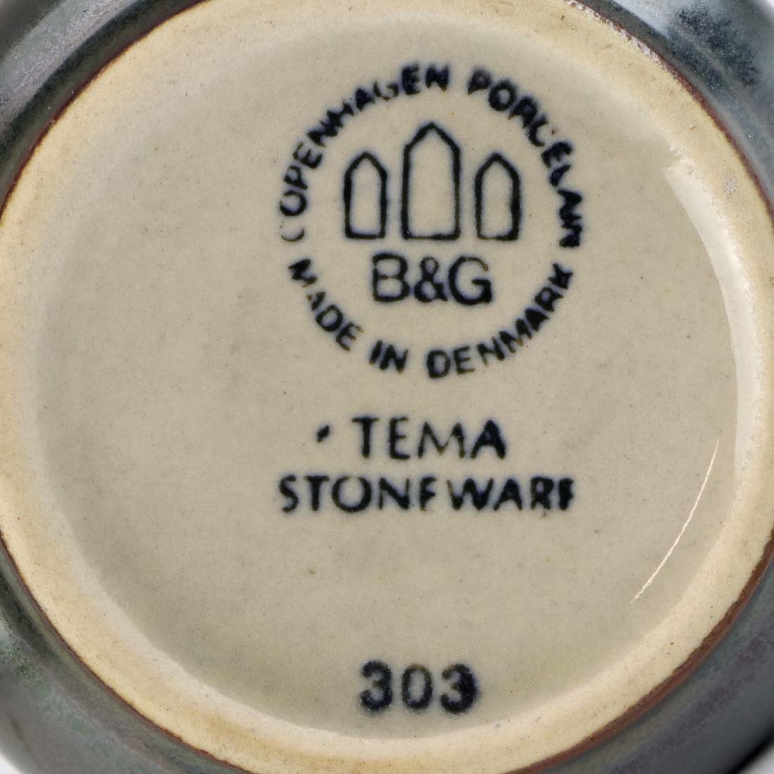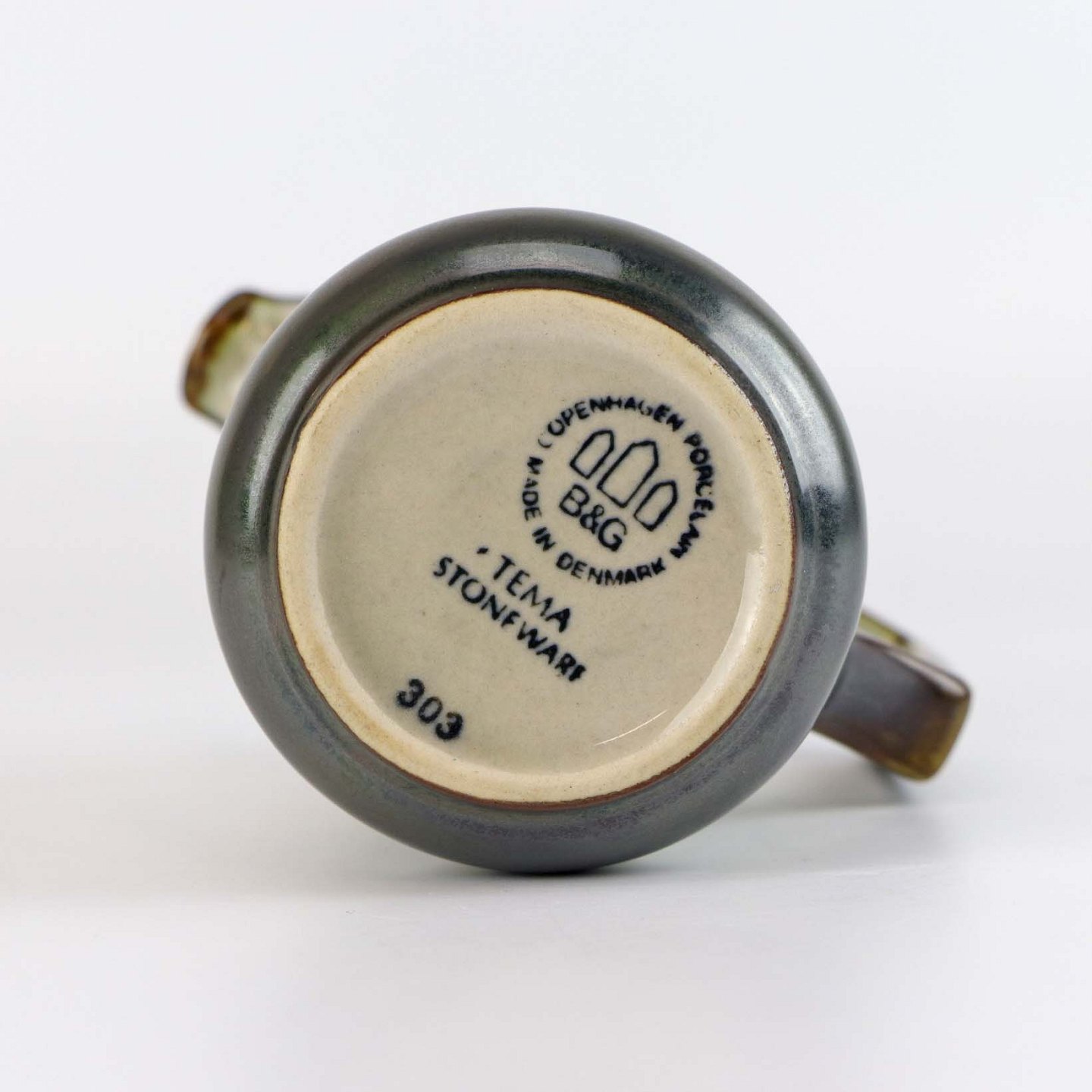 Stellet Tema er af stentøj, glaseret med lys grå og dekoreret med kanter af grønne og brune farver