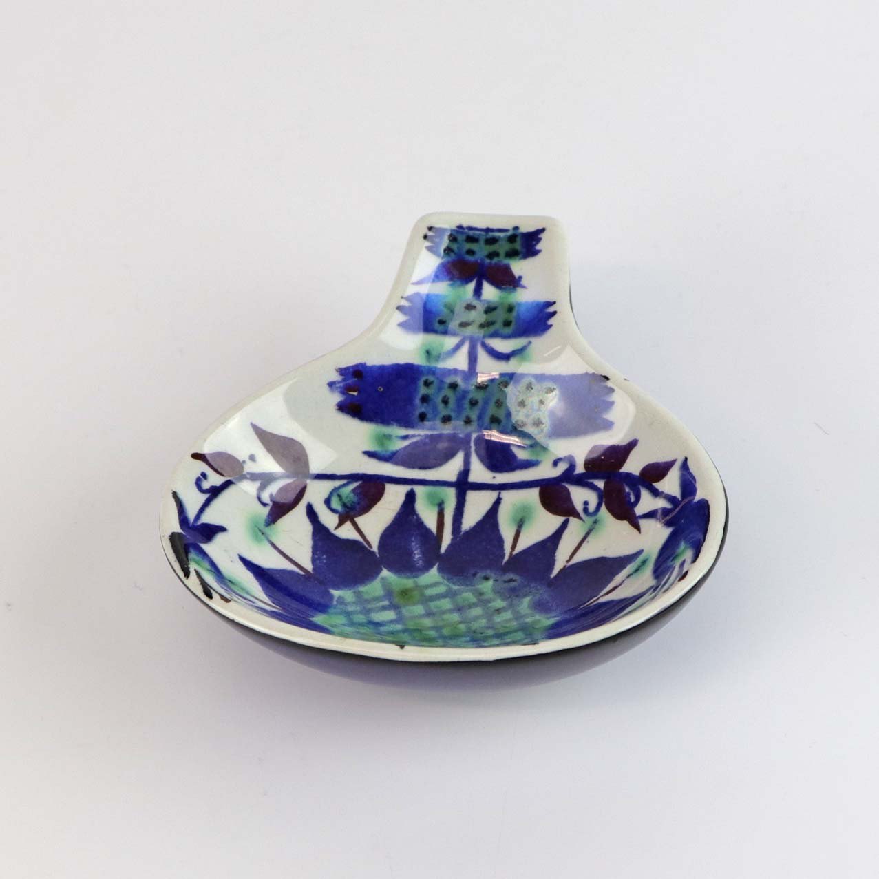 Tenera lille skål med hank i fajance nr 145/2898 med blomstermønster i blå, grønne og røde farver