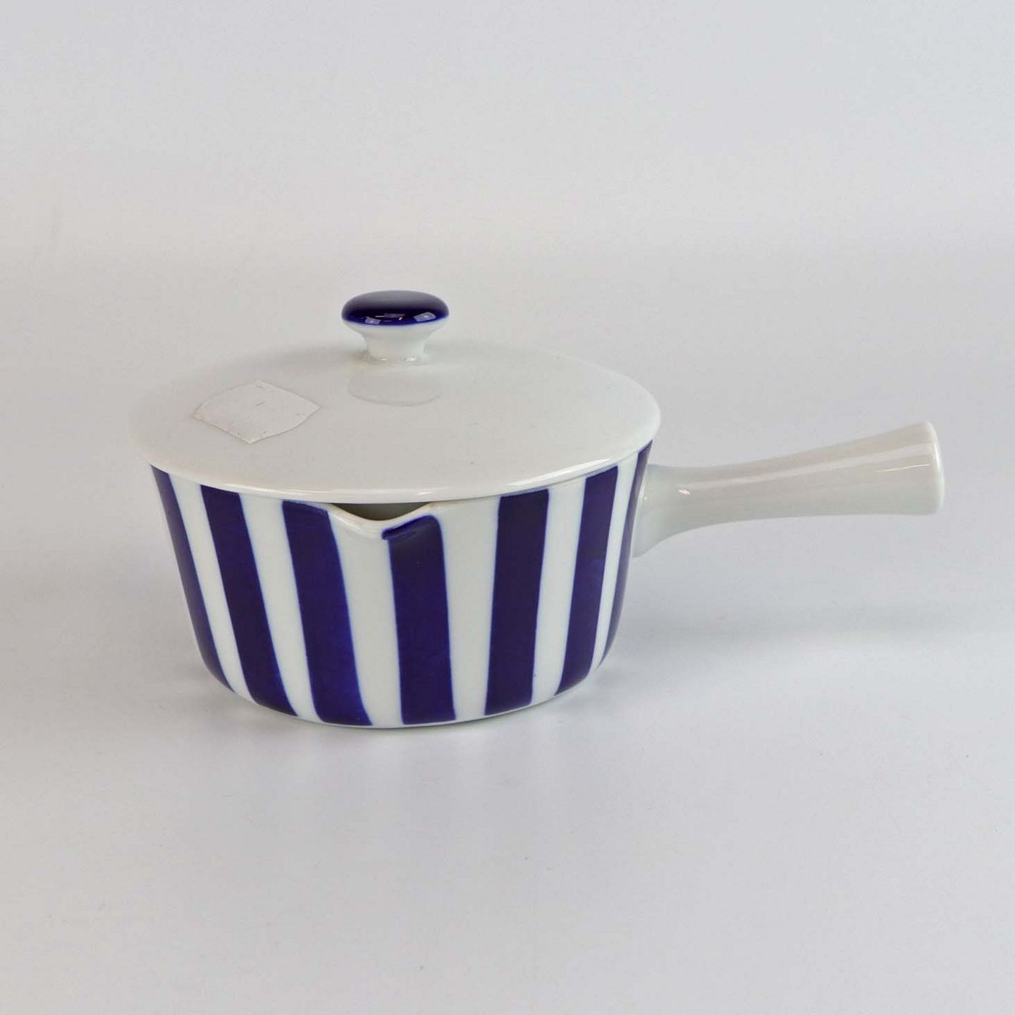 Smørnæb med låg i porcelæn fra stellet blå striber
