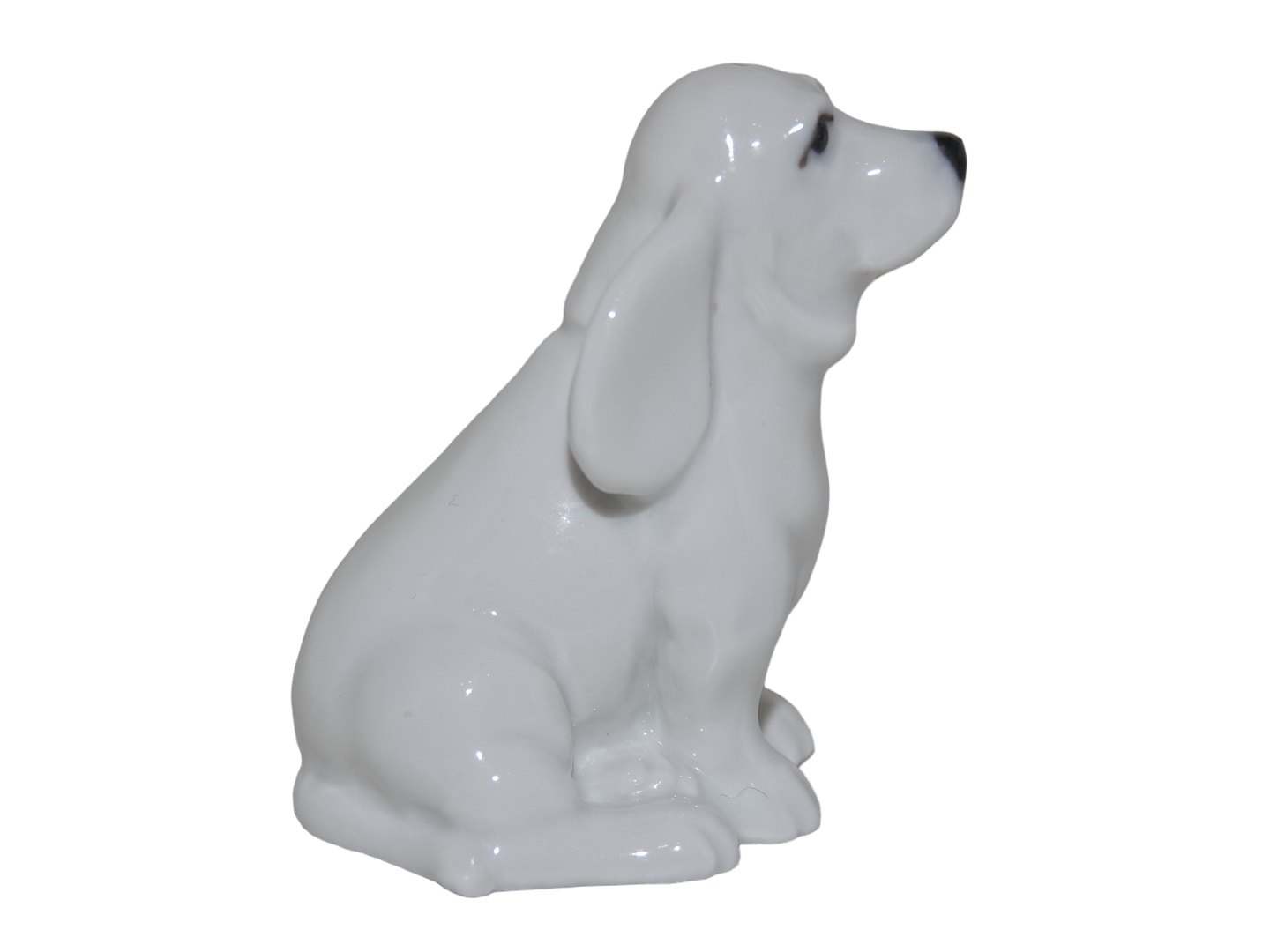 Miniature Royal Copenhagen hundefigur, hvid spaniel.