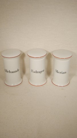 Apoteker/krydderi krukker, fra Bing & Grøndahl.