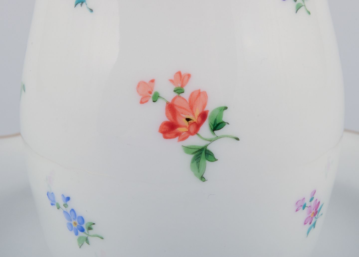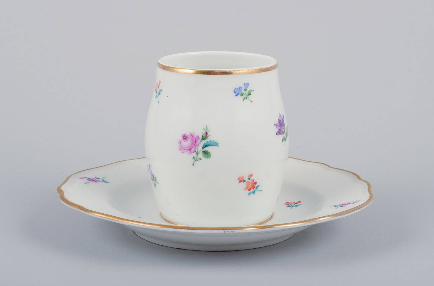 Håndmalet med polykrome blomstermotiver, guldkant.