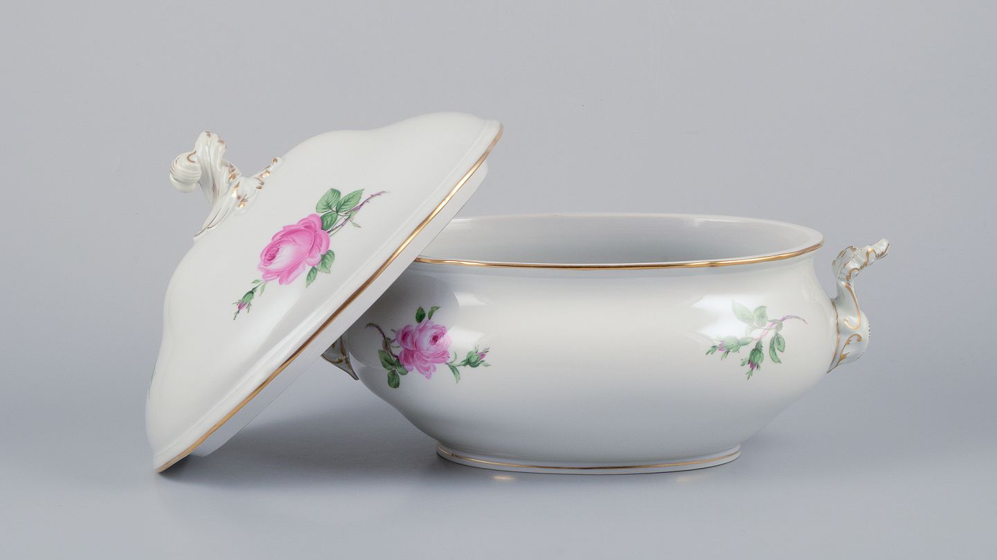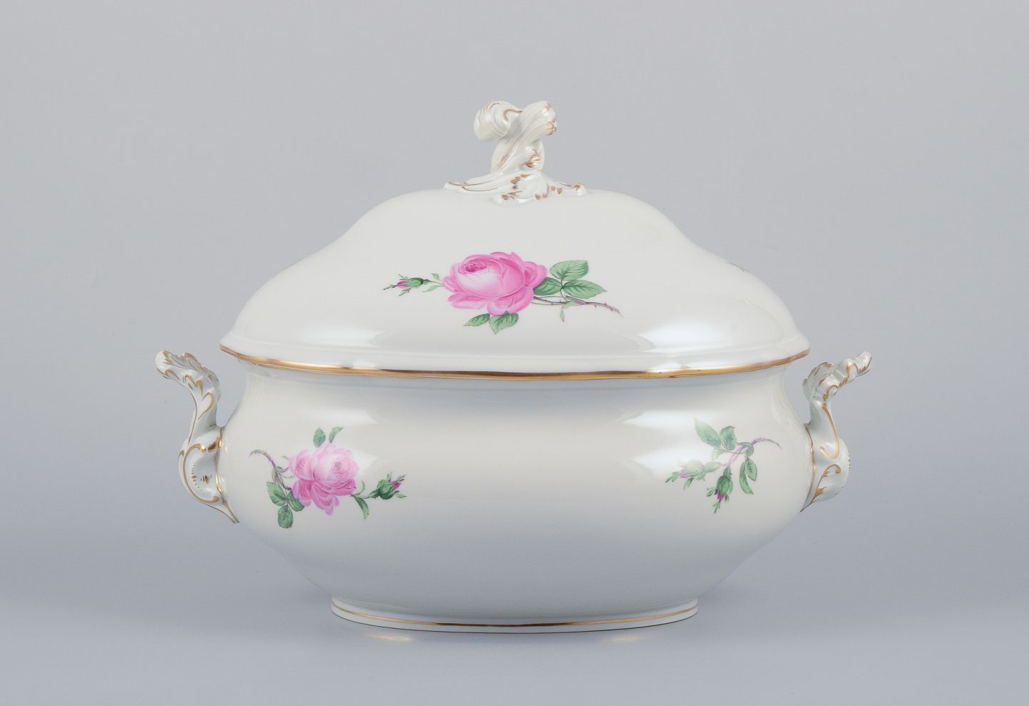 Meissen, Tyskland, stor ”Pink Rose” suppeterrin med hanke.