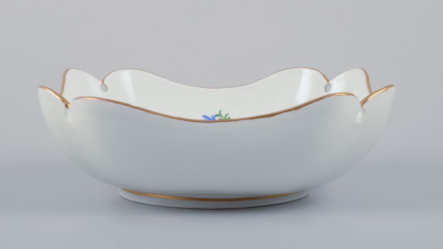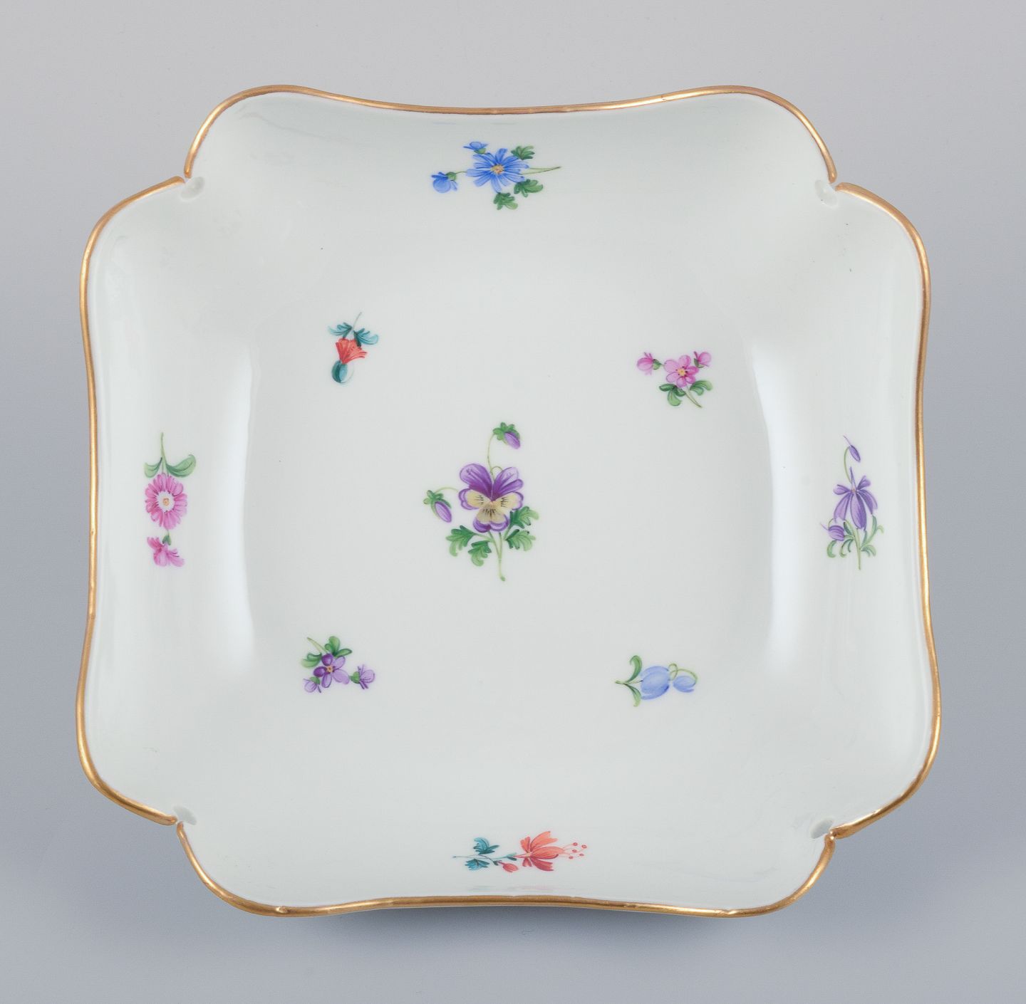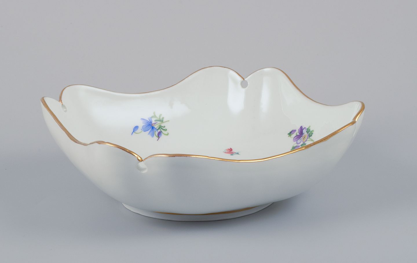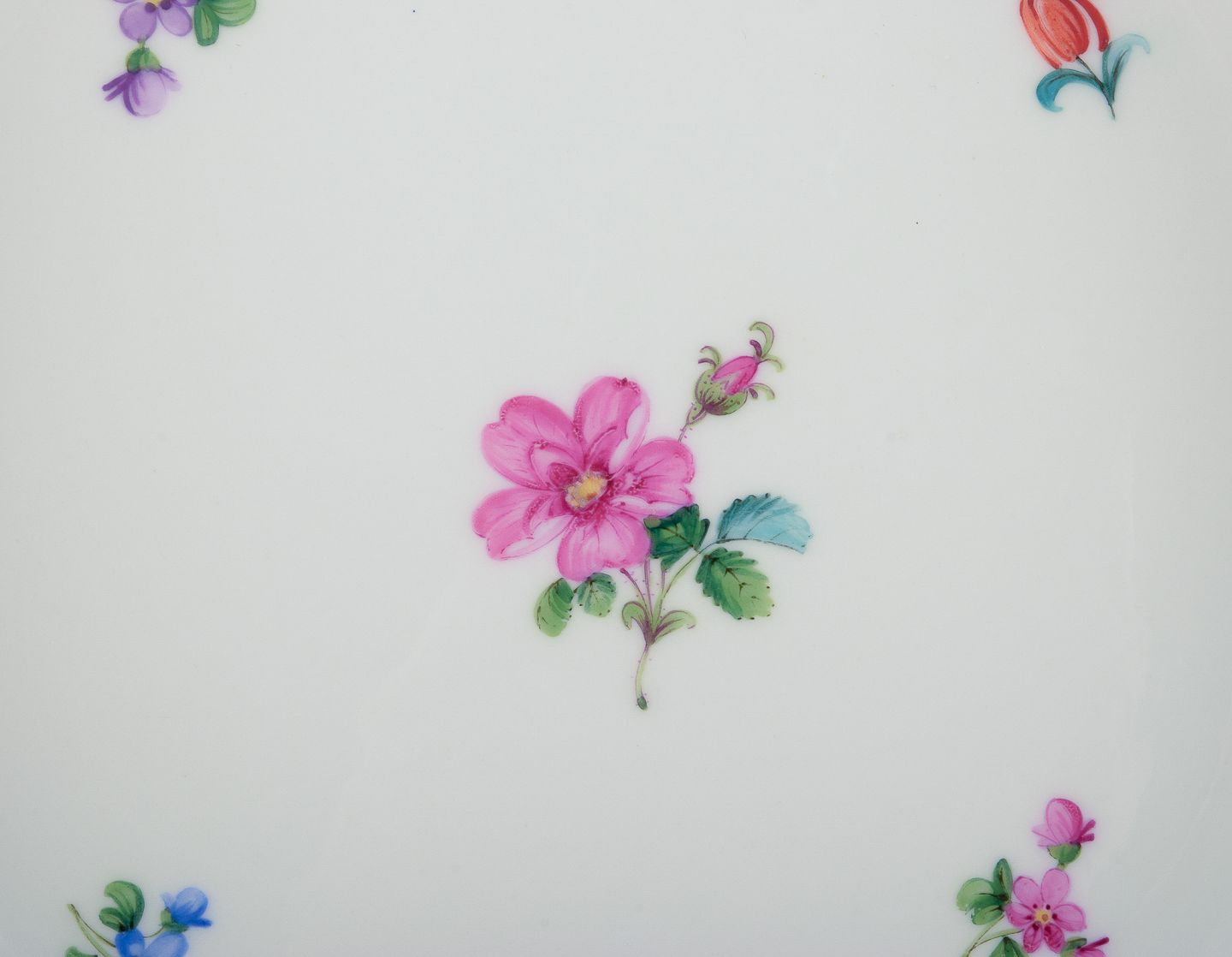 Håndmalet med polykrome blomstermotiver, guldkant.