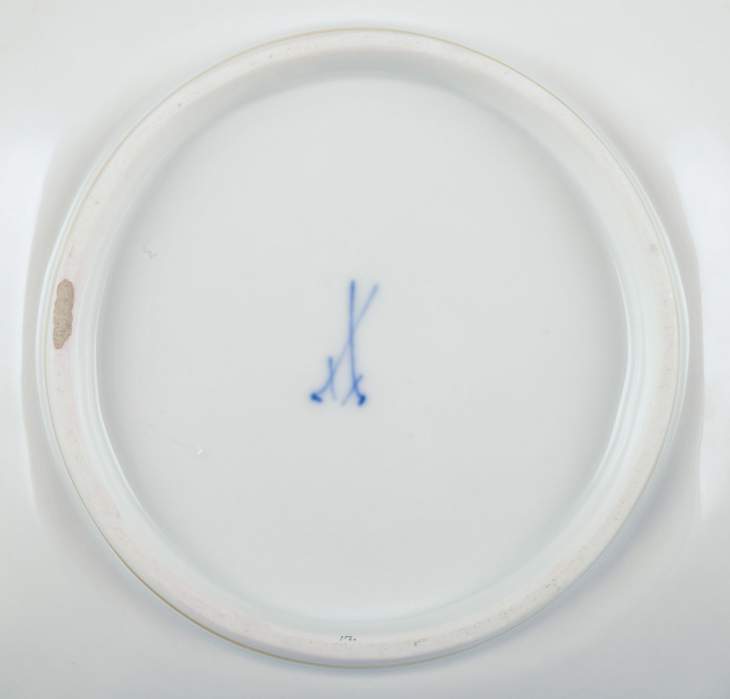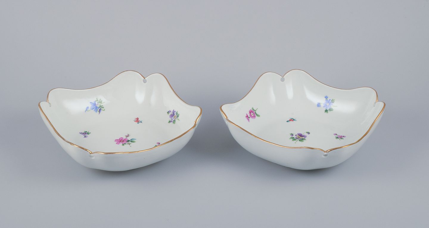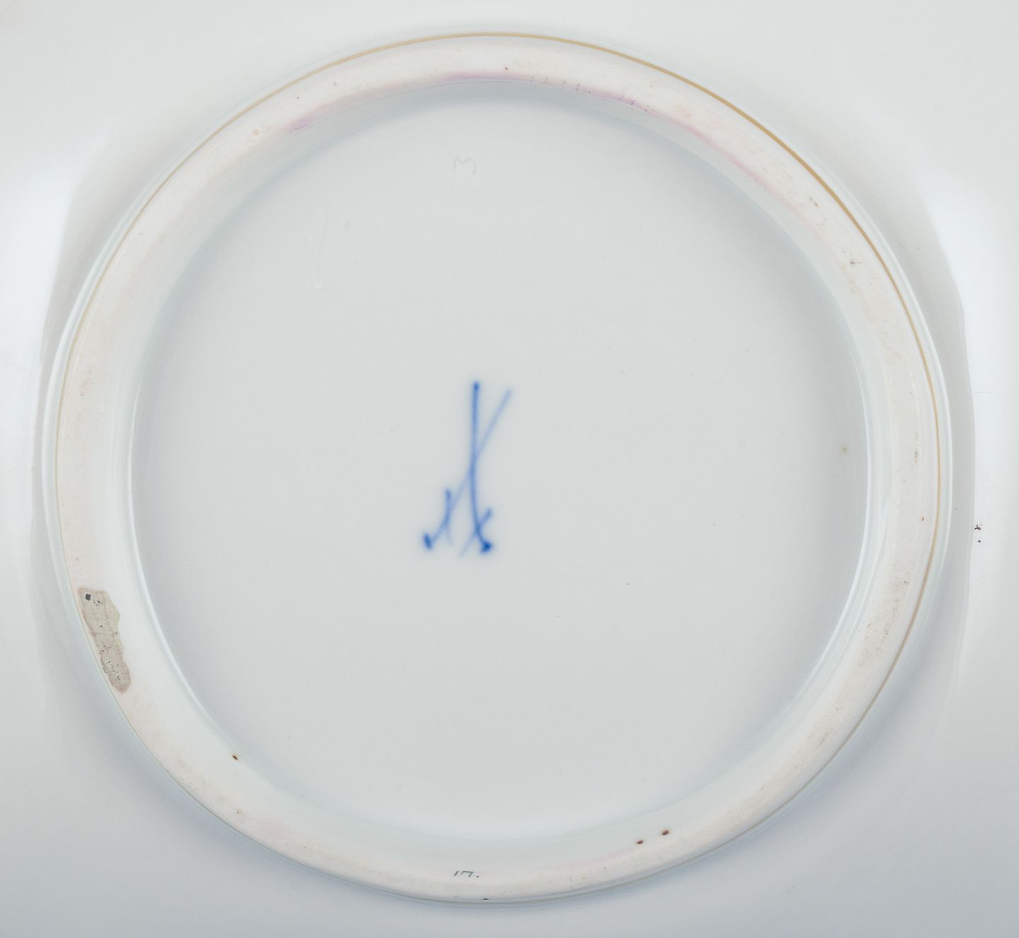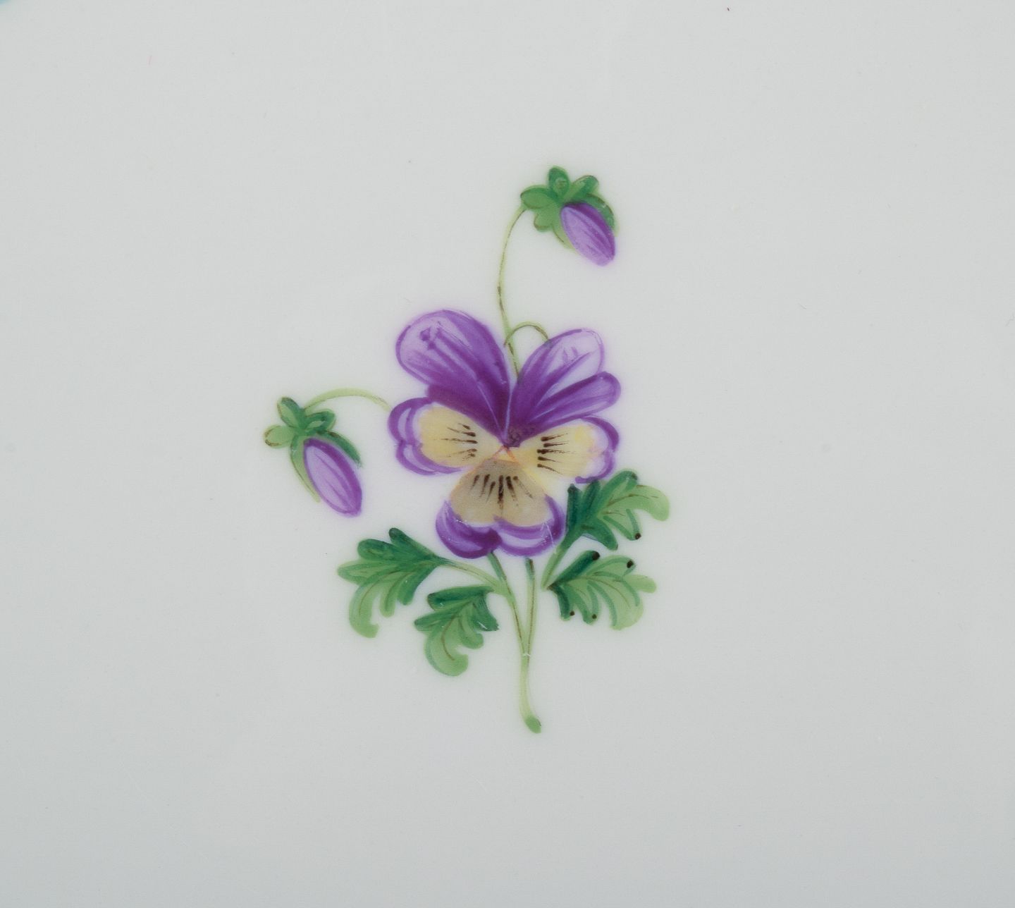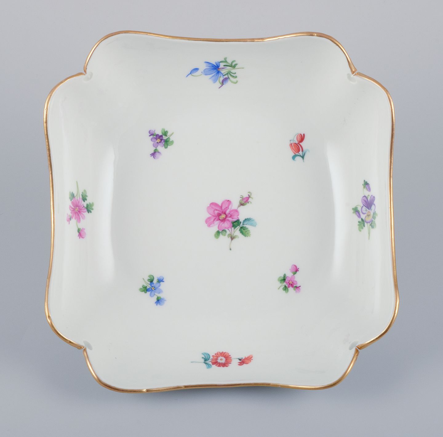 Håndmalet med polykrome blomstermotiver, guldkant.