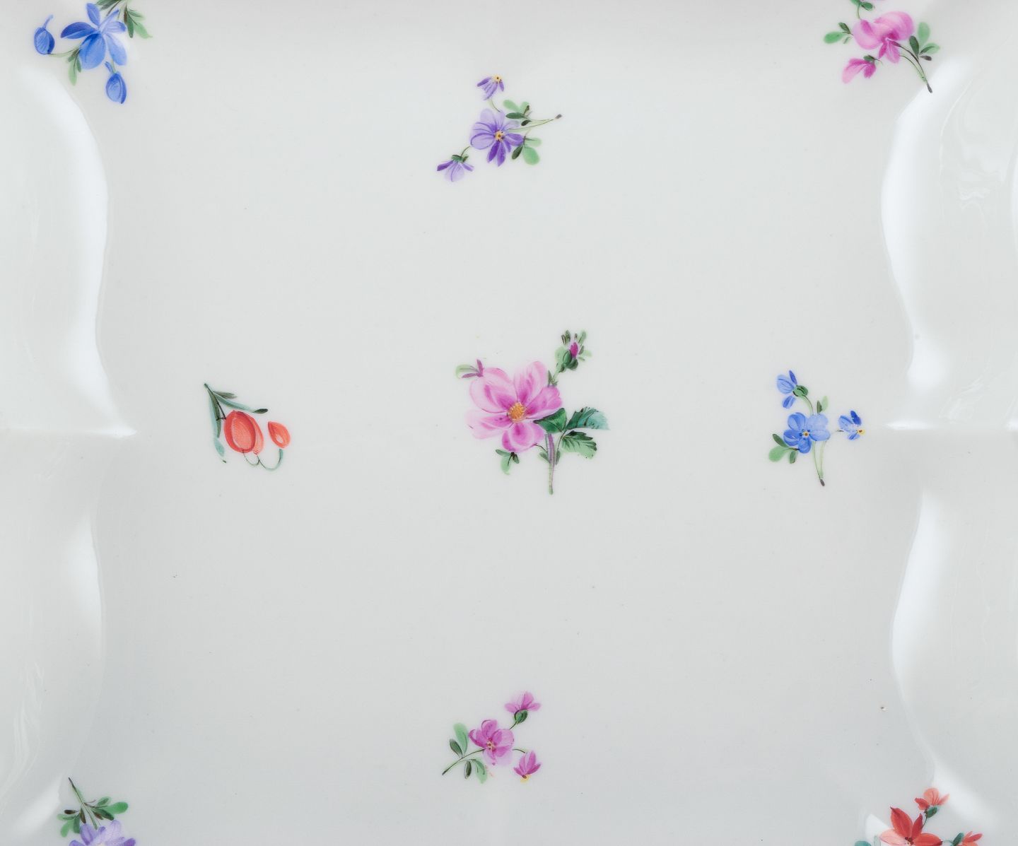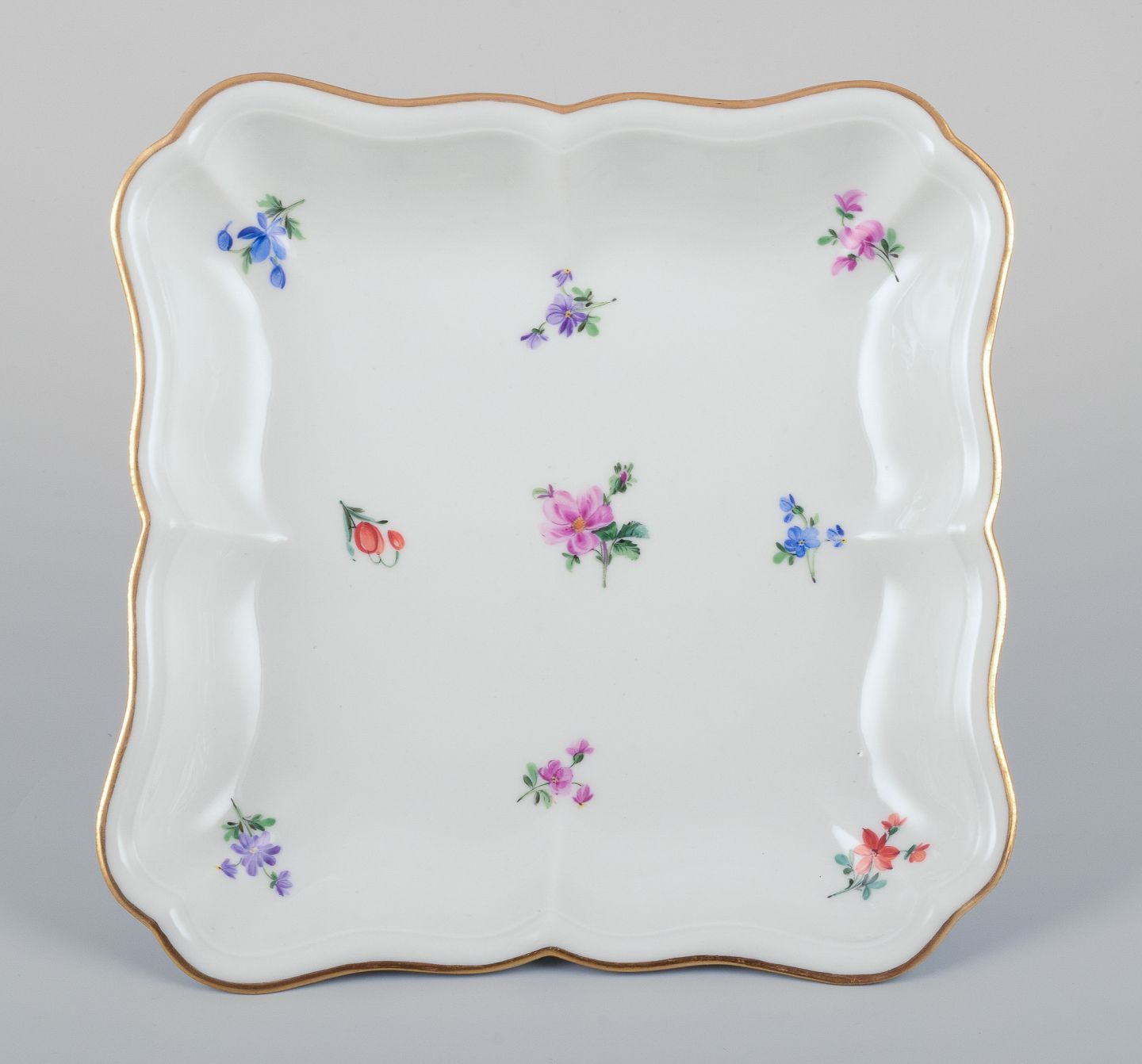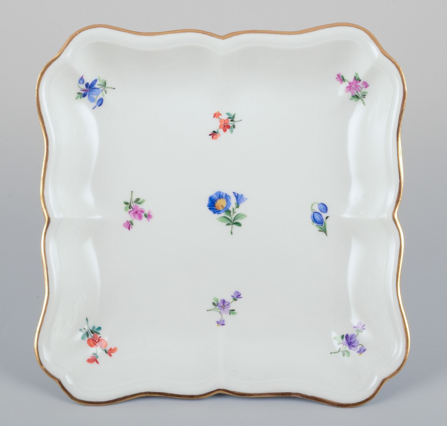 Håndmalet med polykrome blomstermotiver, guldkant.