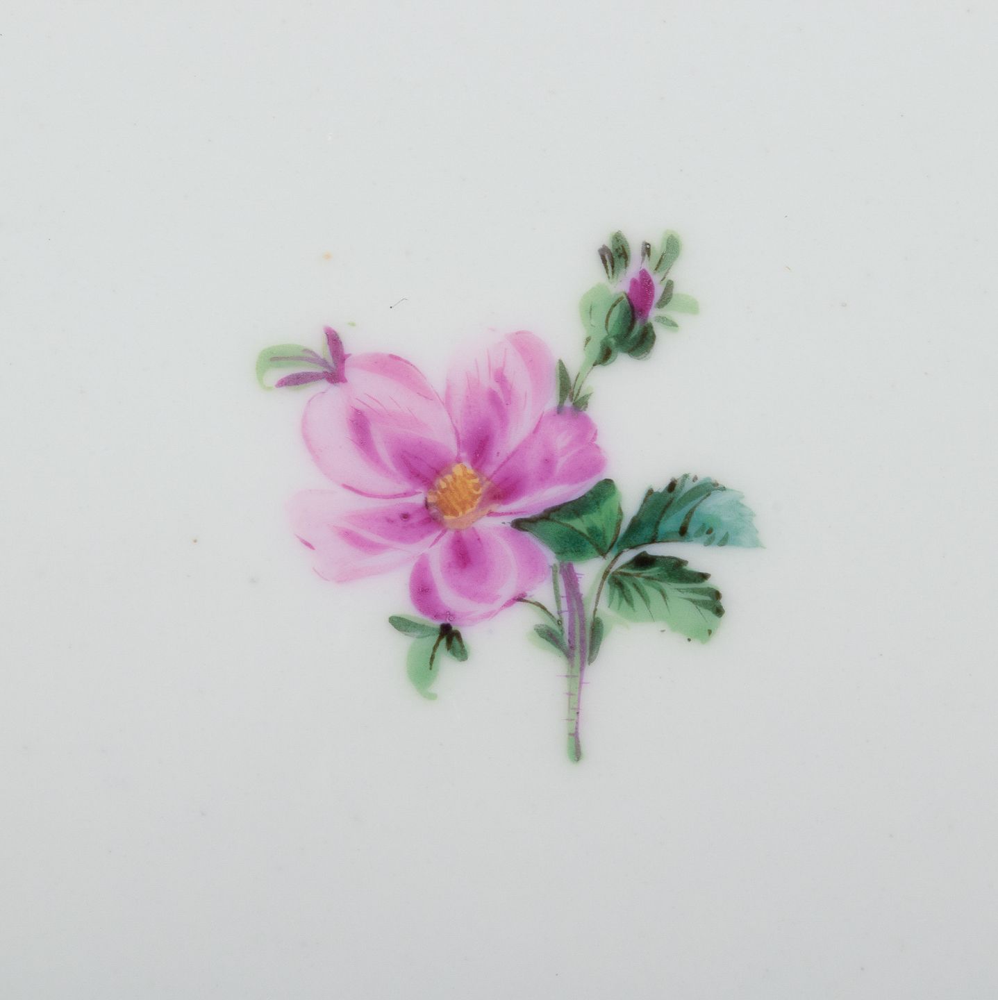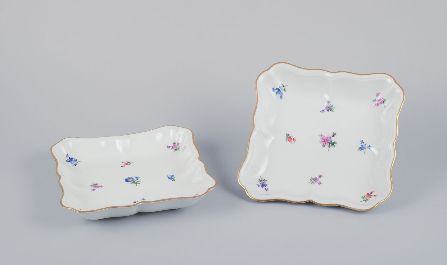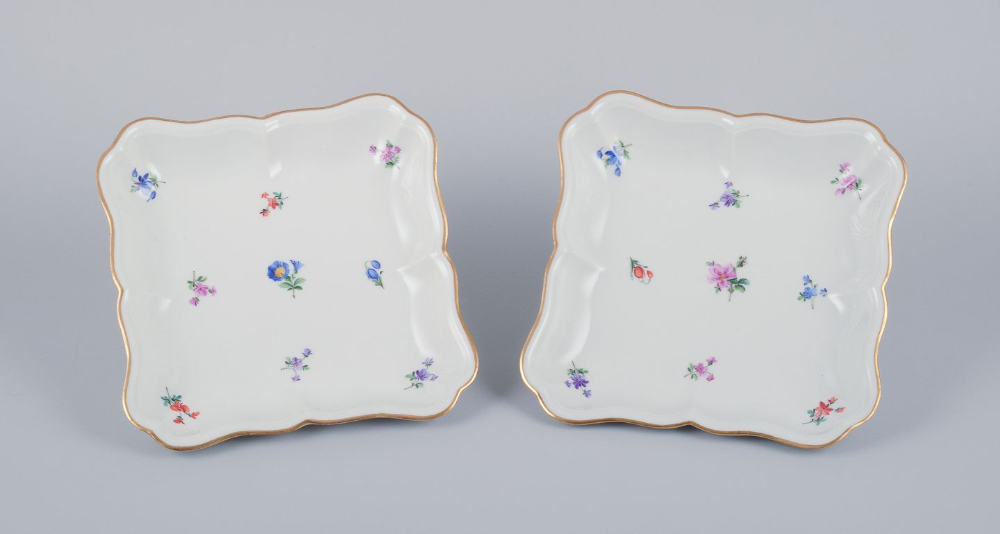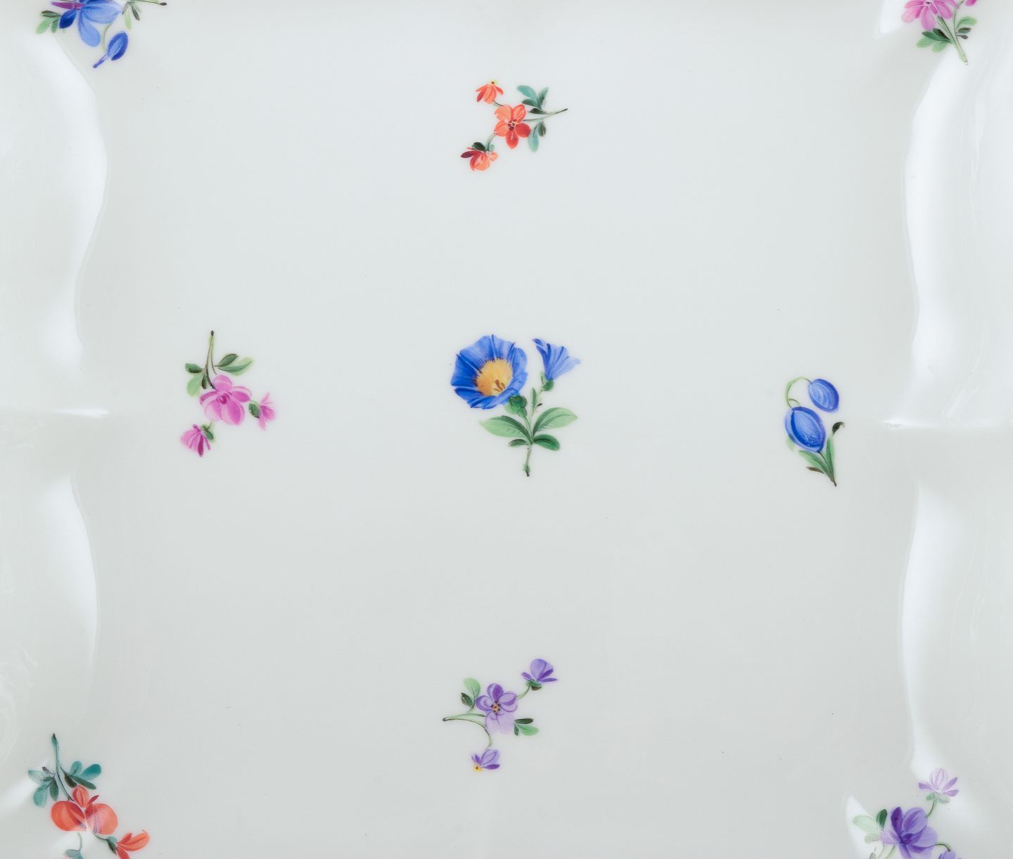 Håndmalet med polykrome blomstermotiver, guldkant.