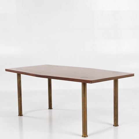 Bådformet sofabord med plade i massiv mahogni og runde messingben.