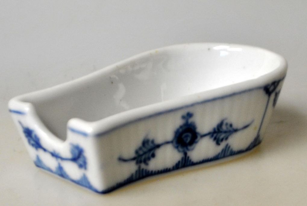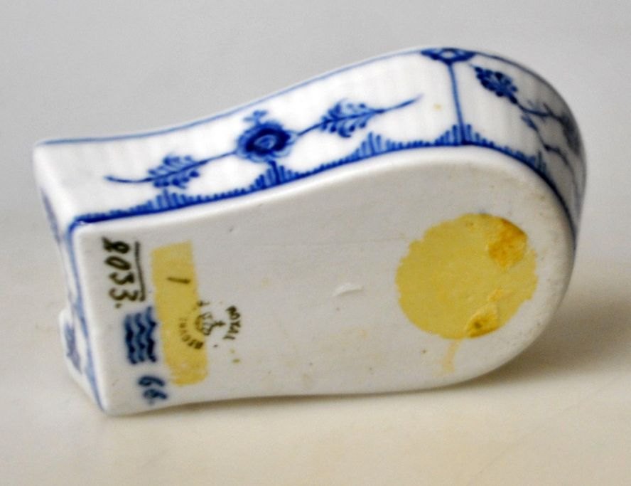 Royal Copenhagen pibeholder i musselmalet porcelæn, riflet, no. 2033. 20. årh. København, Danmark. Stemplet. L: 9 cm.