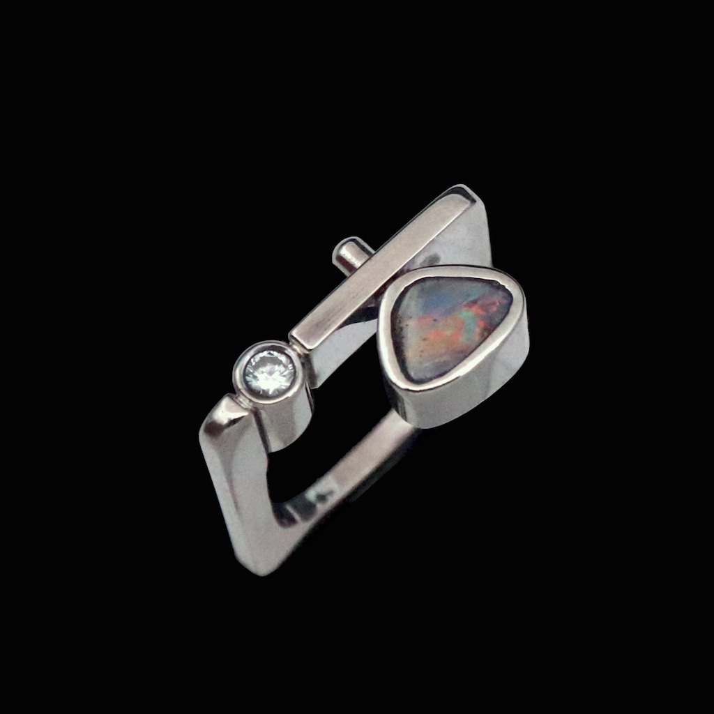Knud Barslund. Ring i 14k hvidguld med opal og brillant.