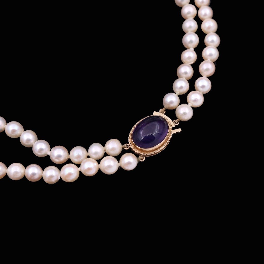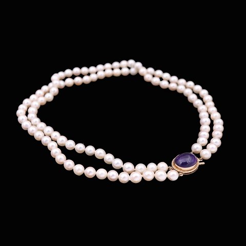 Erik S. Cohn-Pålsson. To-radet perlekæde med lås i 14k guld med ametyst.