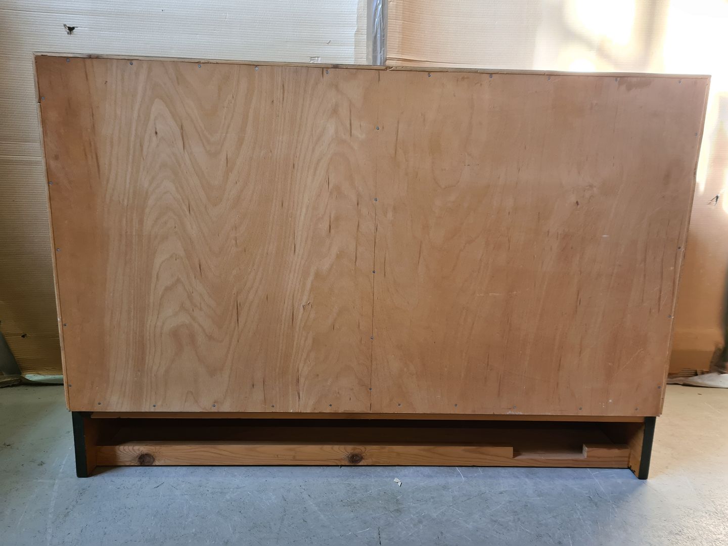 Skab i fineret bøgetræ med malet sokkel, fra 1960erne.