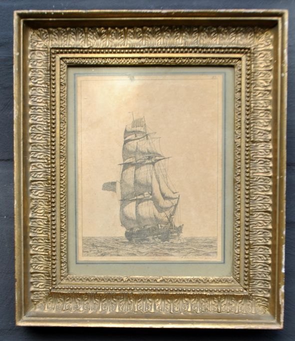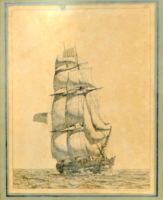 Eckersberg. Christoffer Wilhelm (1783 - 1853) Denmark: A North American Brig. For full Sails it steers in smooth waters a little to H. Signed: C.W Eckersberg fecit aqua forti. Etching in zinc. 22 x 17 cm.