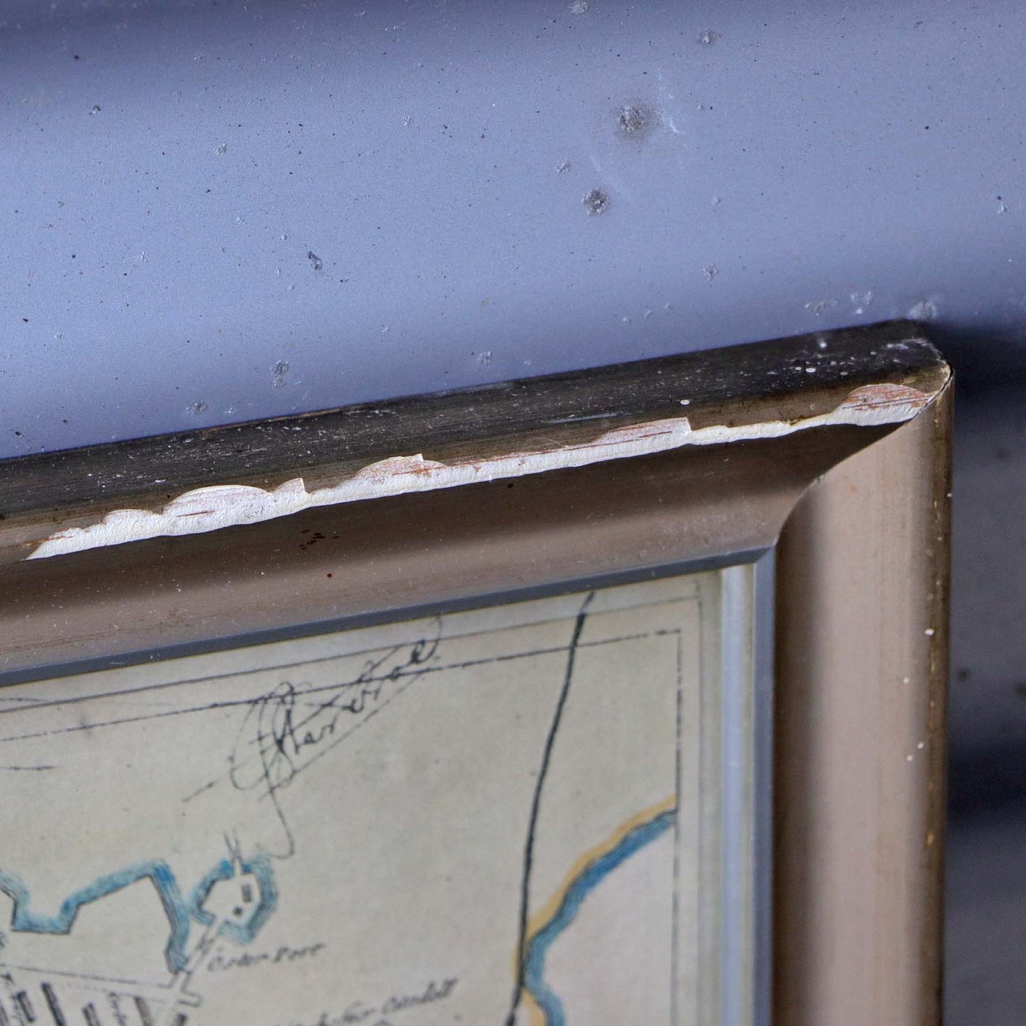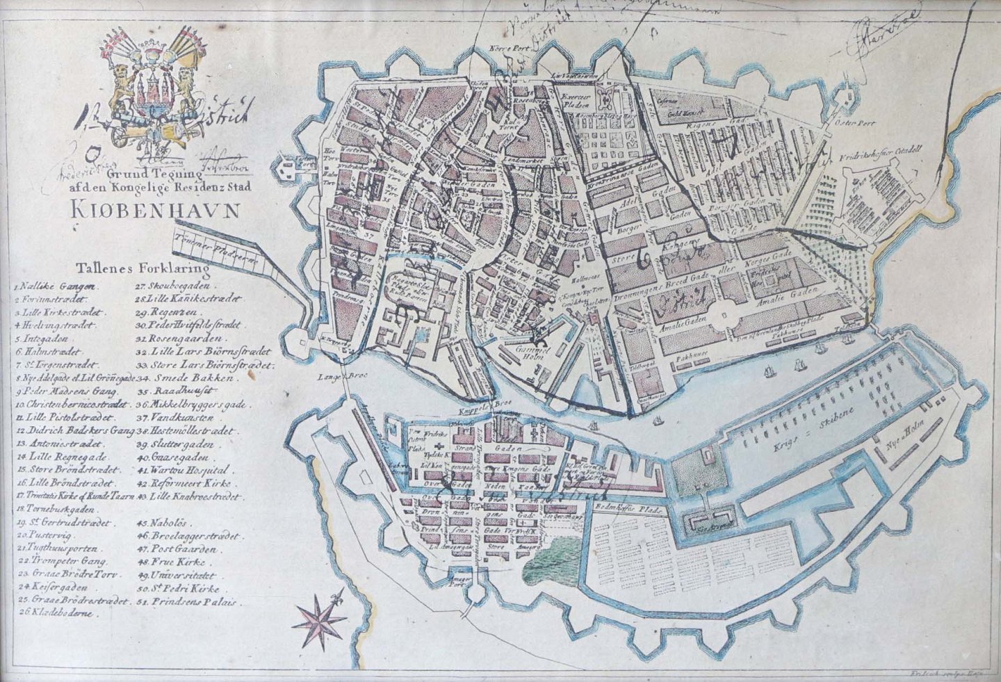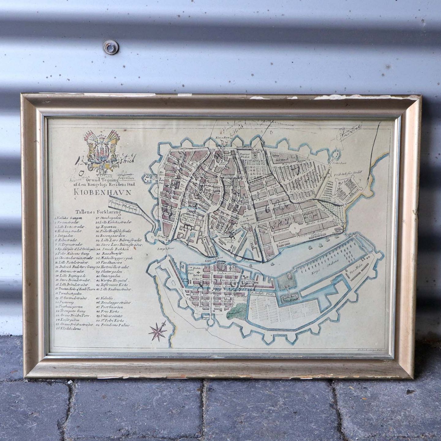 Indrammet tryk i bronze farvet ramme. Gammel tryk med titlen Grundtegning af den Kongelige residenz, København. Dateret år 1804