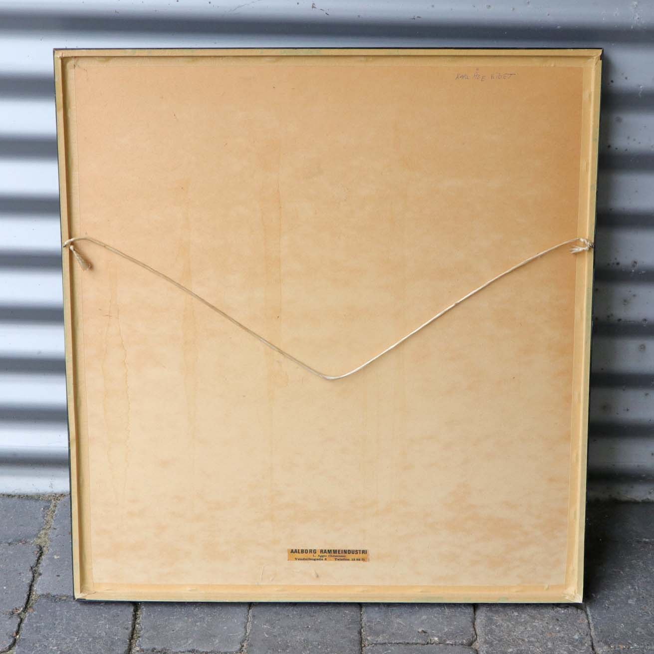 Text available in Danish: Indrammet litografi med passepartout i ramme. Litografisk tryk nr 33/60 E.T MCMLXIIII med titlen Sort Joker 90. Geometrisk former i farverne sort, hvid, grå og sølv.