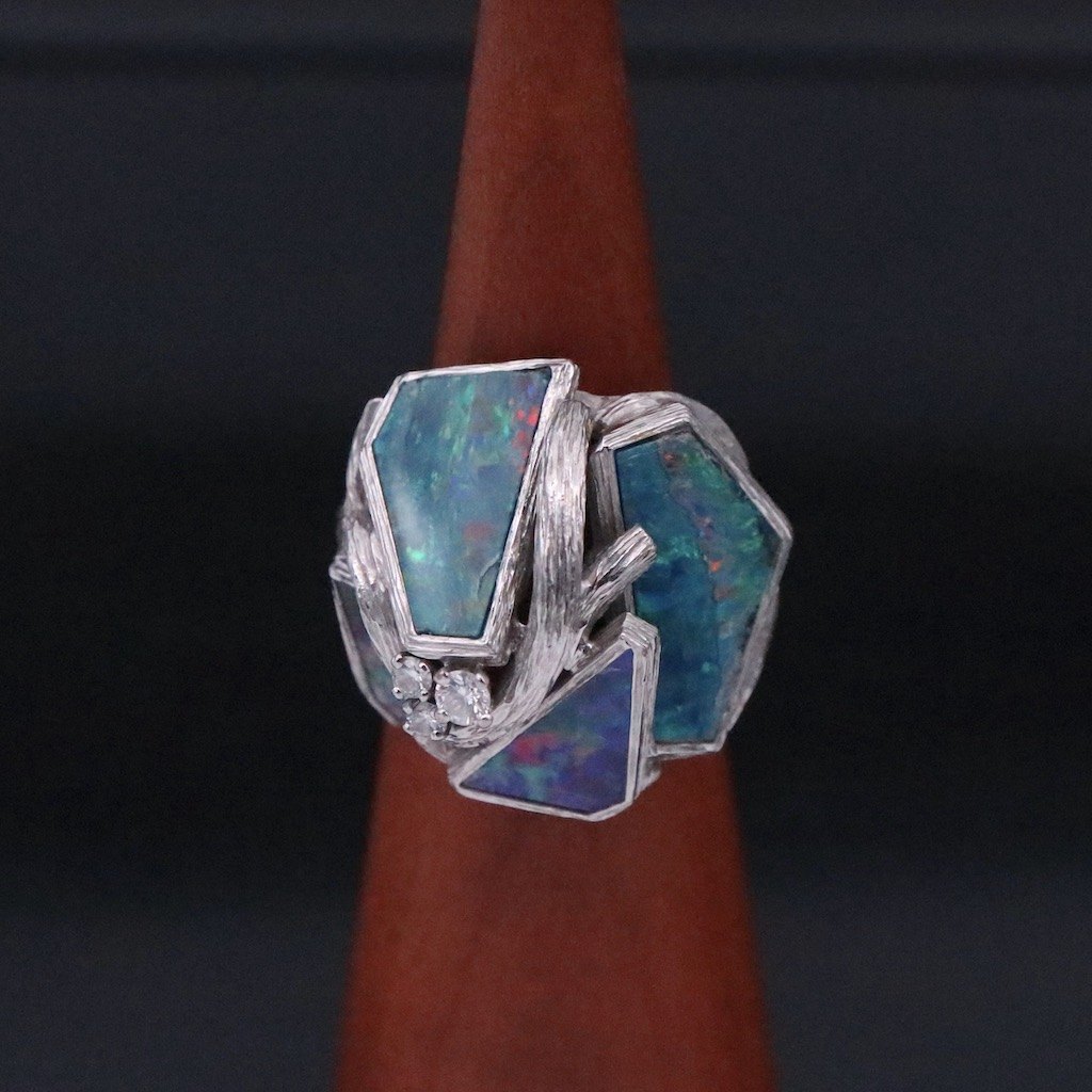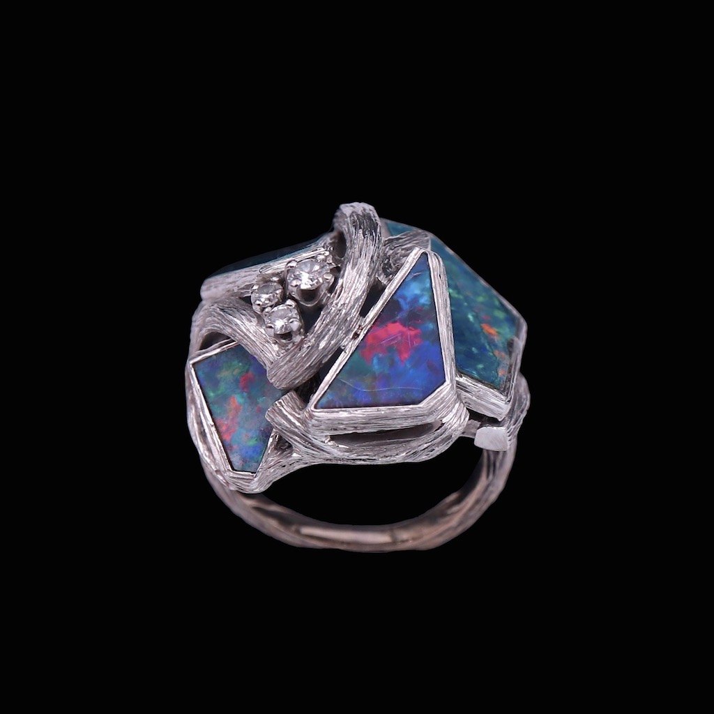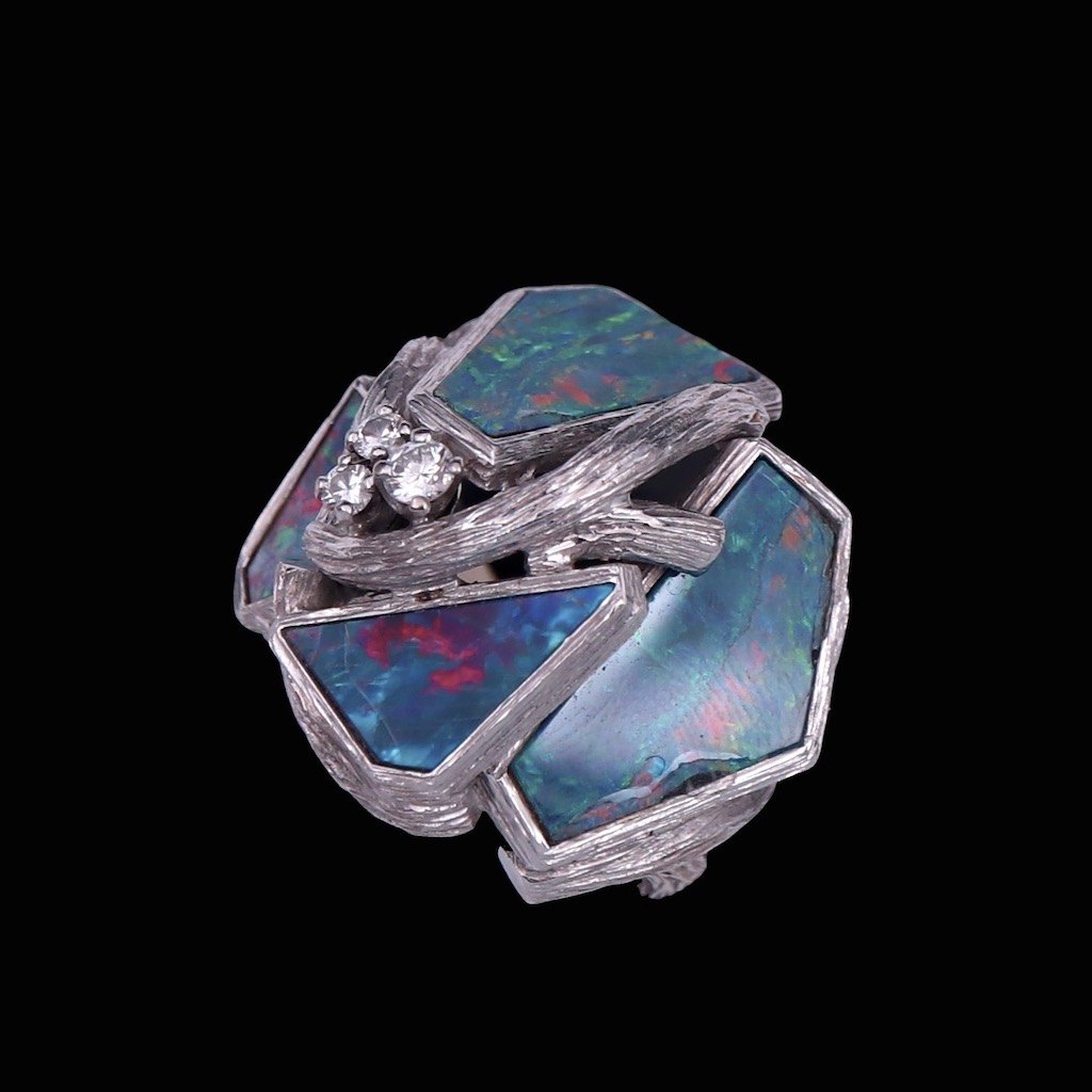 Augustin Julia-Plana. Ring i 18k hvidguld med opaler og brillanter.