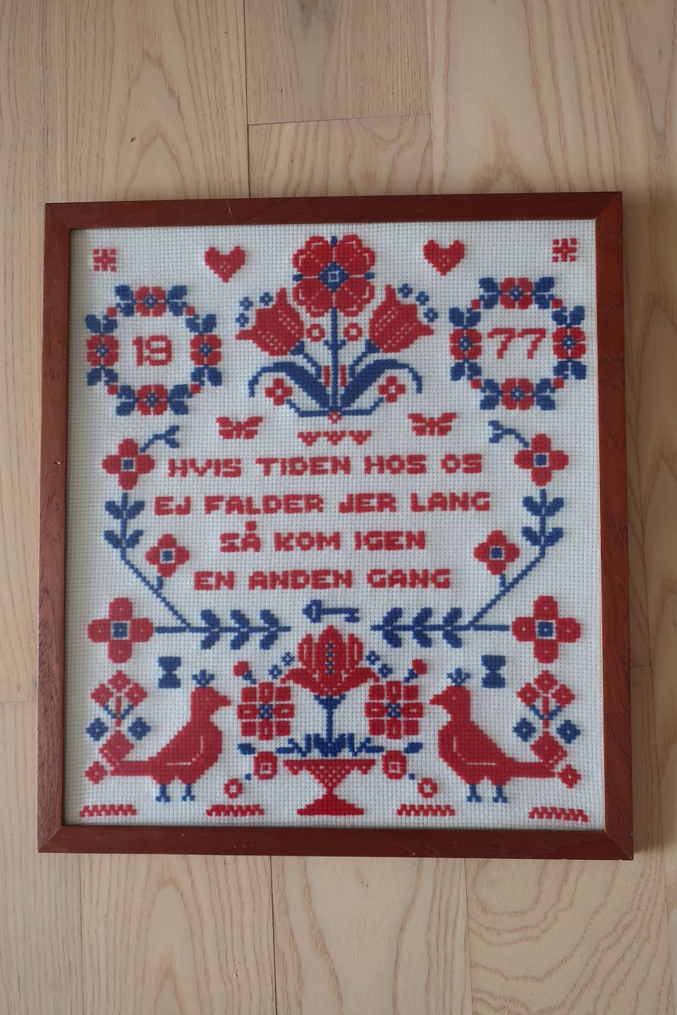 Tekst: "Hvis tiden hos os ej falder jer lang, så kom igen en anden gang"