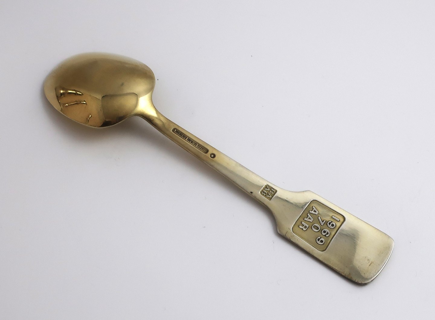 Michelsen. Sterlingsølv forgyldt. Mindeske 1969. Kong Frederik IX's 70 års fødselsdag 1969.