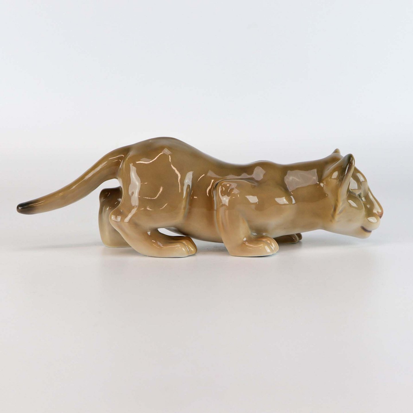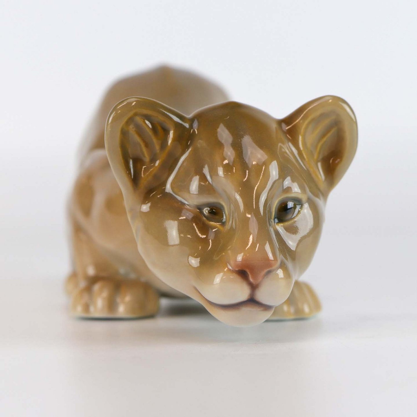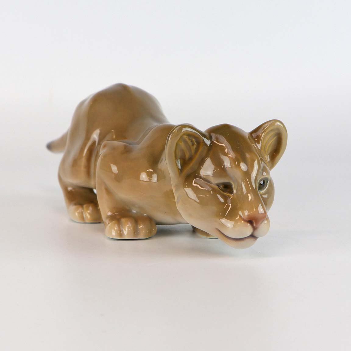Figur i porcelæn, håndmalet med motiv af løveunge på jagt nr 2529
