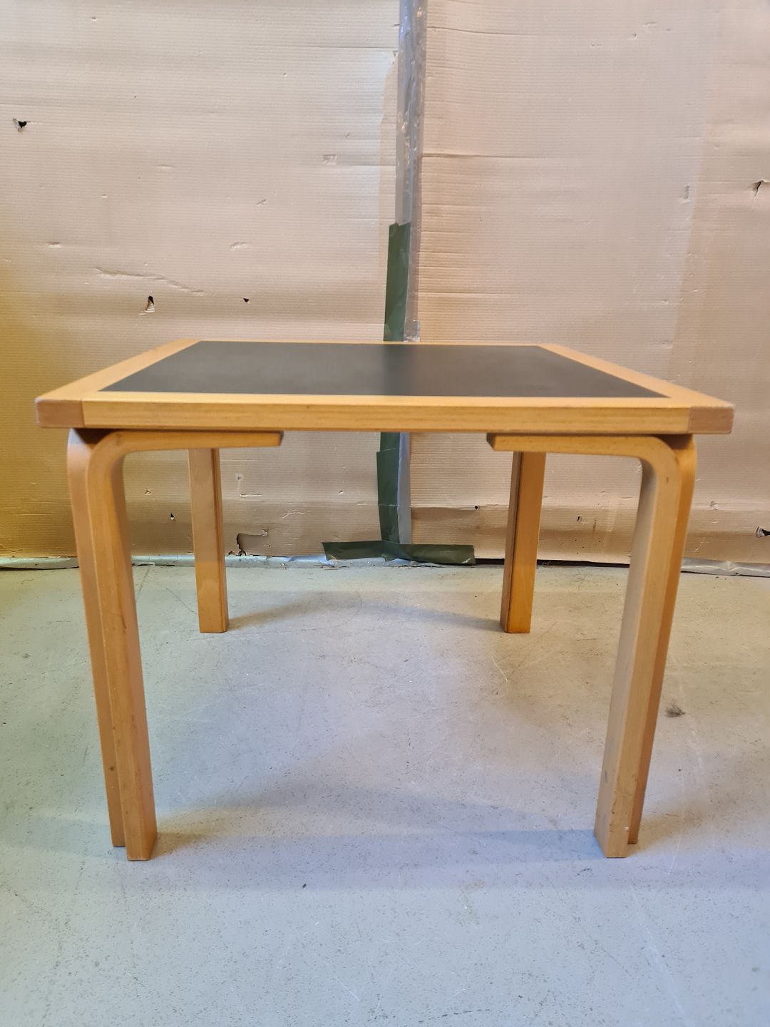 Sofabord i bøgetræ med sort linoleumsplade, fra 1980erne.