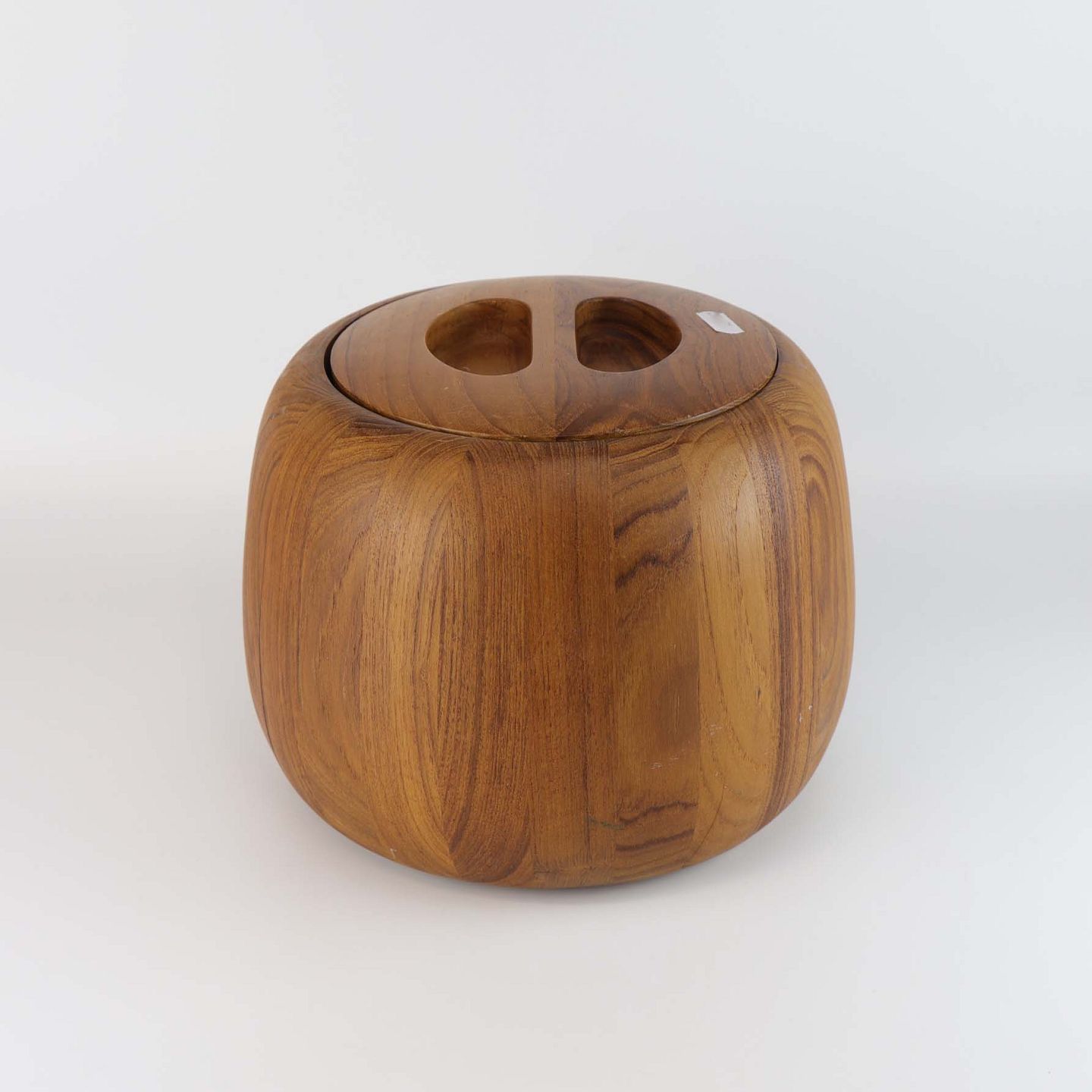 Rund isspand i teaktræ med indvendig spand i sort plast