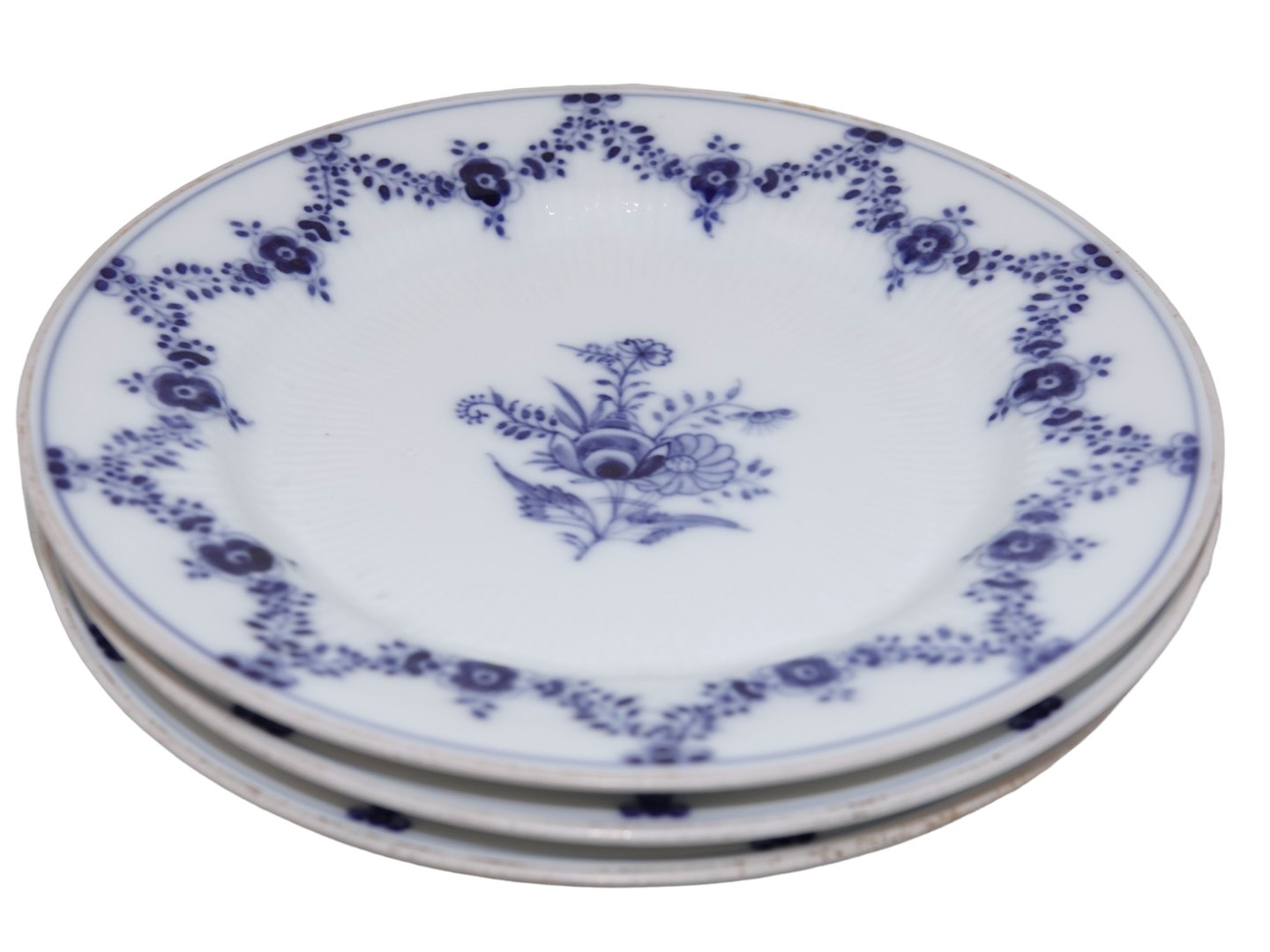 Guldkanten er meget slidt og en tallerken har skår på bagsiden på selve ståkanten. Ellers fin stand.