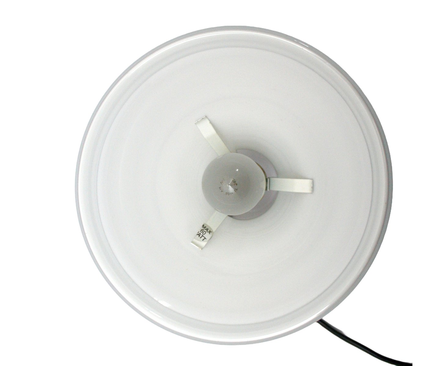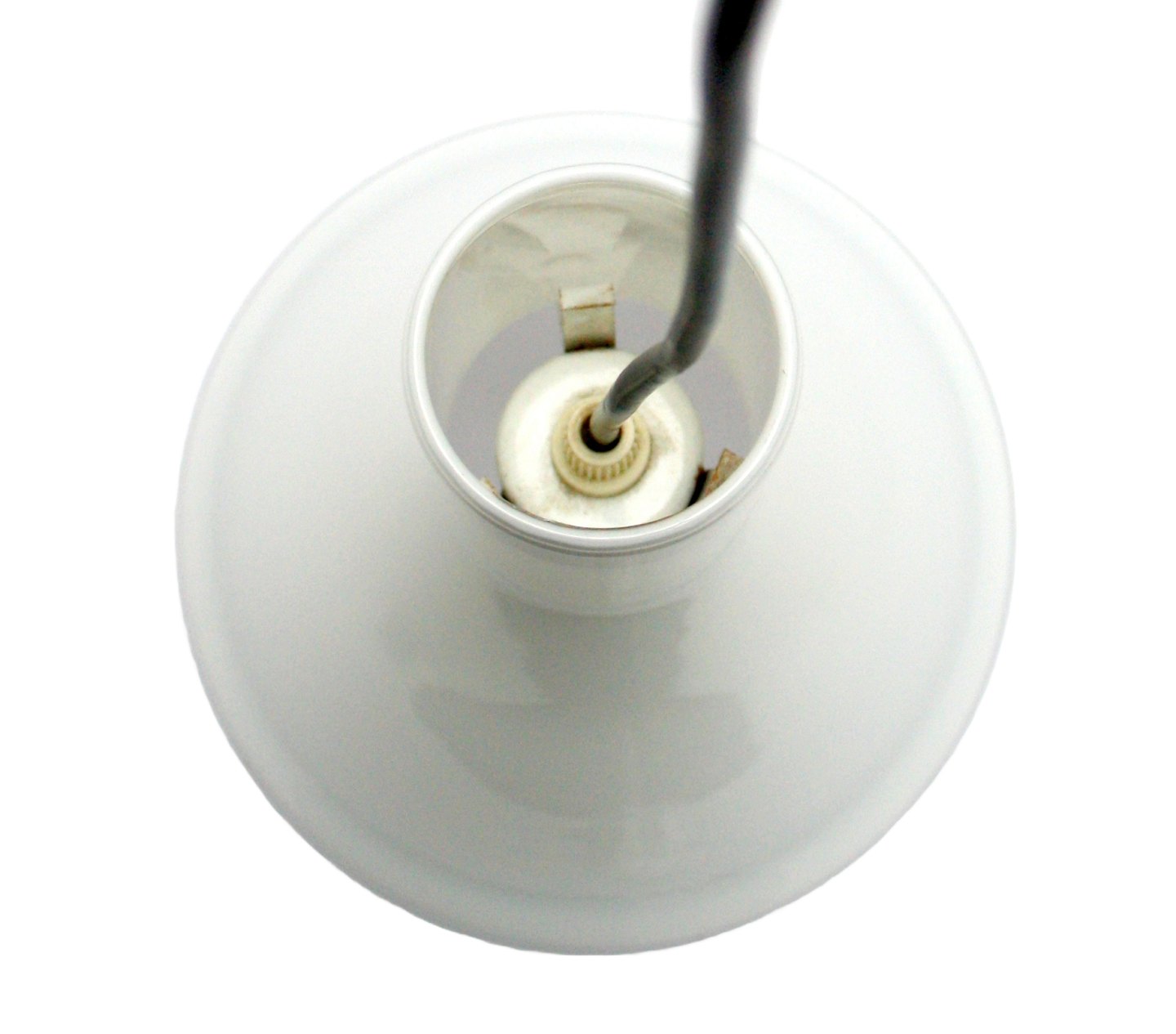 Holmegaard, P&T pendel, hvid med sort ledning, Type mini. Højde 21 cm. Diameter 21 cm. Pris: 650 kr.