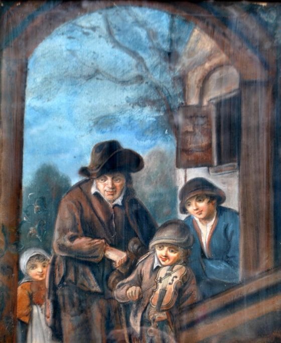 Schweickhardt, Hendrik Willem (1747 - 1797) Tyskland: Omvandrende musikanter. Pastel på papir. Signeret: Schweickhardt 1784. 41 x 34,5 cm. Indrammet: 68 x 61 cm