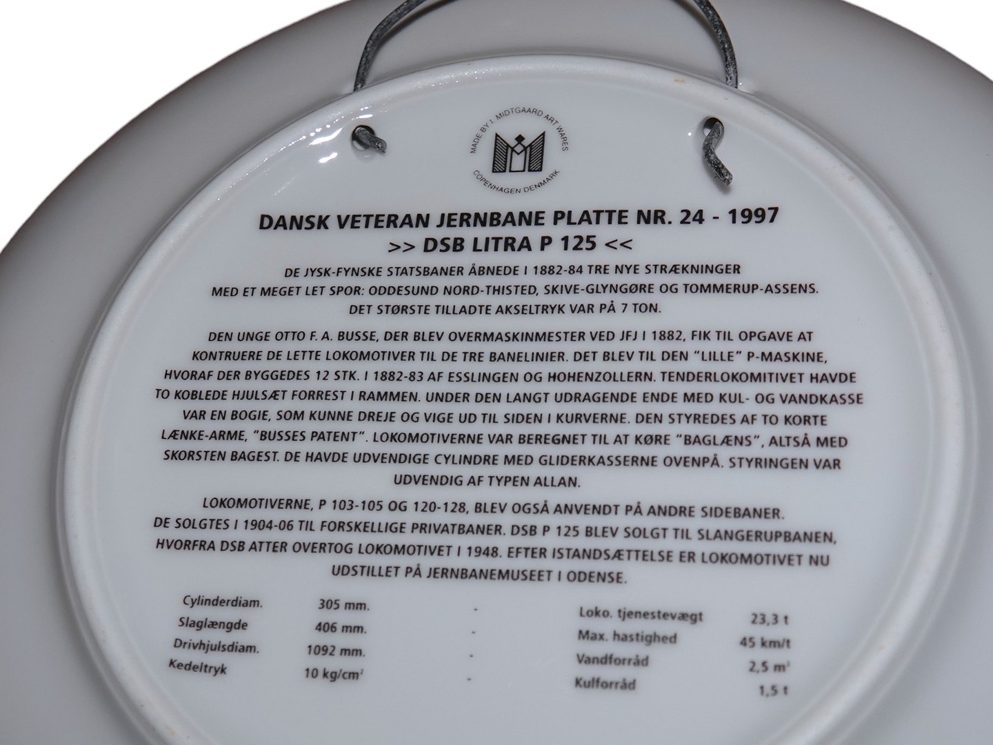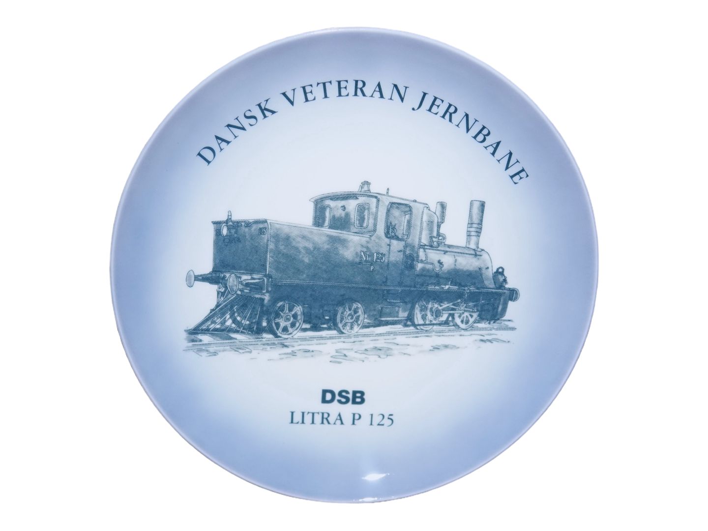 Midtgaard Art Wares togplatte, Dansk Veteranplatte No. 24 med DSB tog. Starten af serien blev lavet hos Bing & Grøndahl.