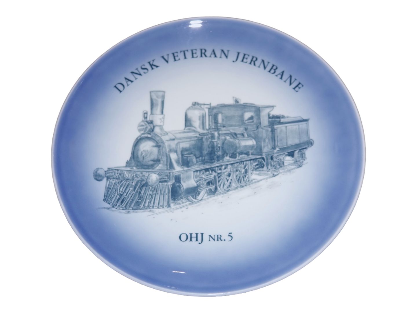 Midtgaard Art Wares togplatte, Dansk Veteranplatte No. 26 med DSB tog. Starten af serien blev lavet hos Bing & Grøndahl.