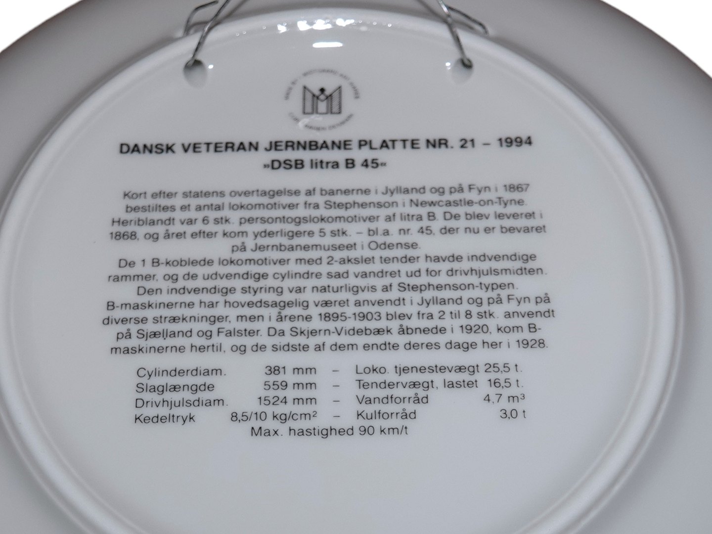 Midtgaard Art Wares togplatte, Dansk Veteranplatte No. 21 med DSB tog. Starten af serien blev lavet hos Bing & Grøndahl.