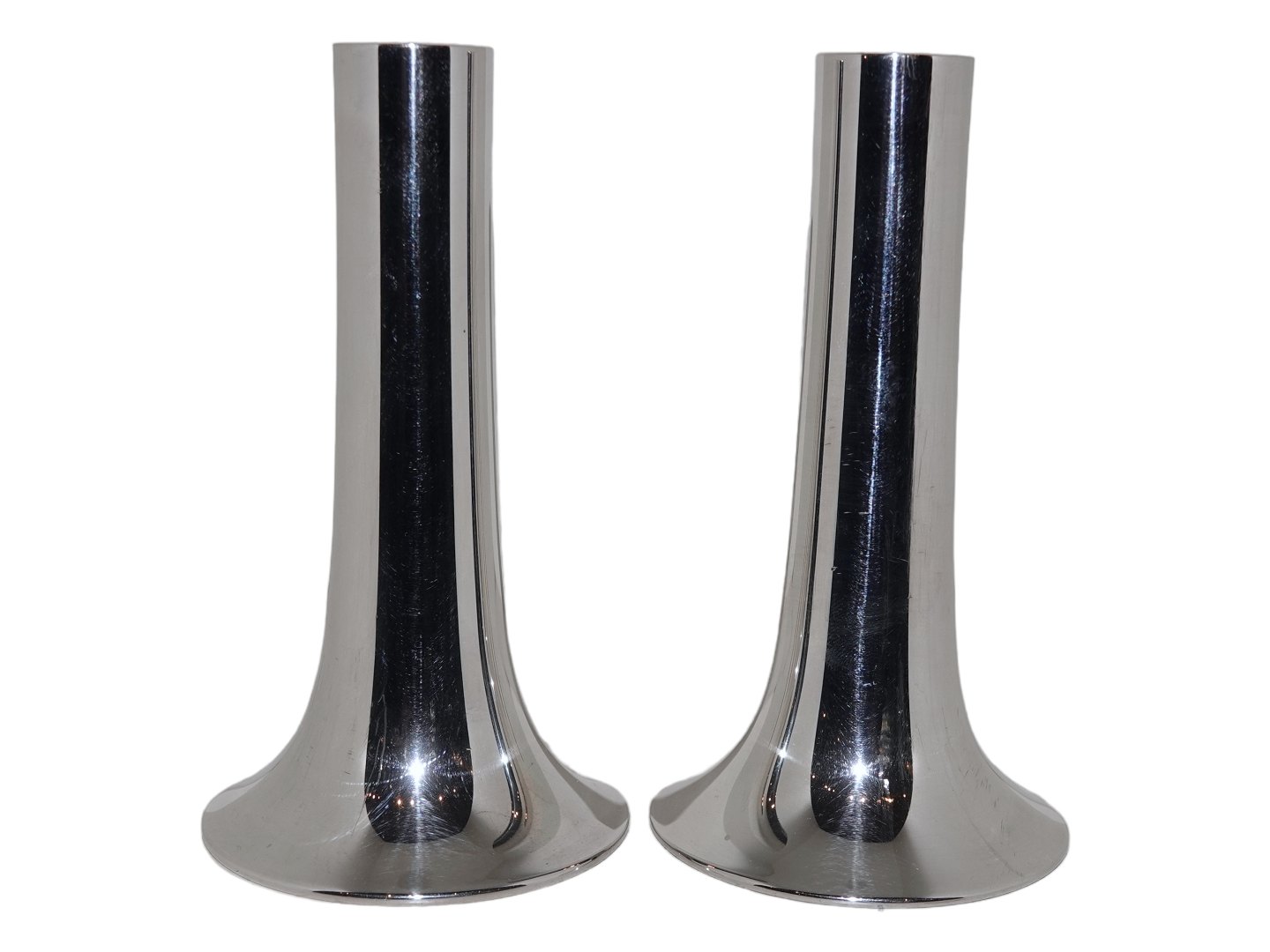 Georg Jensen sterling silver, pair of Danish Modern candle light holders designed by Henning Koppel.