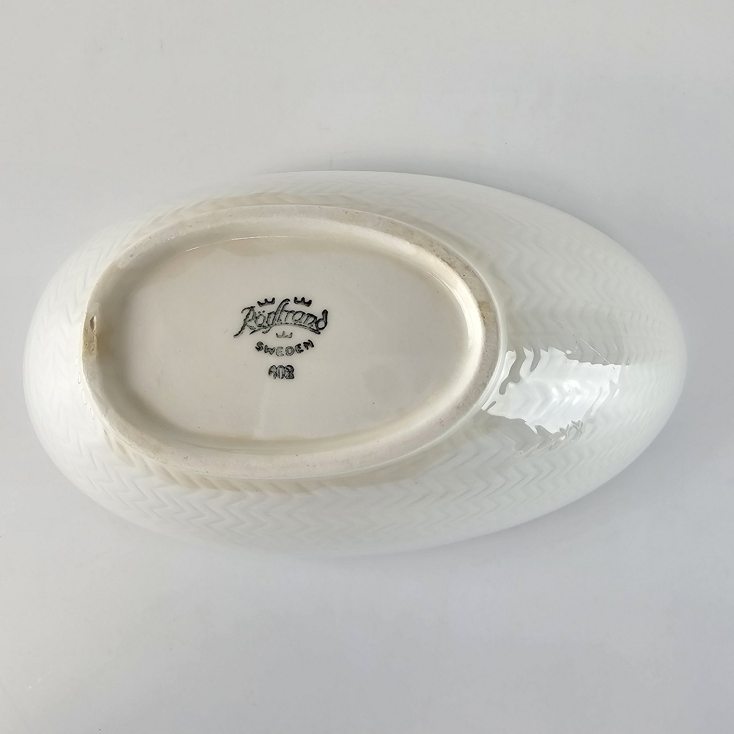 Eld blev produceret i Sverige fra 1950 til 1971. Den er med hvidt glasur og med sildebensmønster. Stellet bliver også produceret i farverne blå og rød.