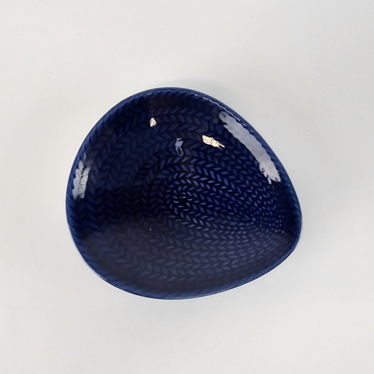 Lille dråbeformet asiet i fajance fra stellet Blå Eld nr. 581