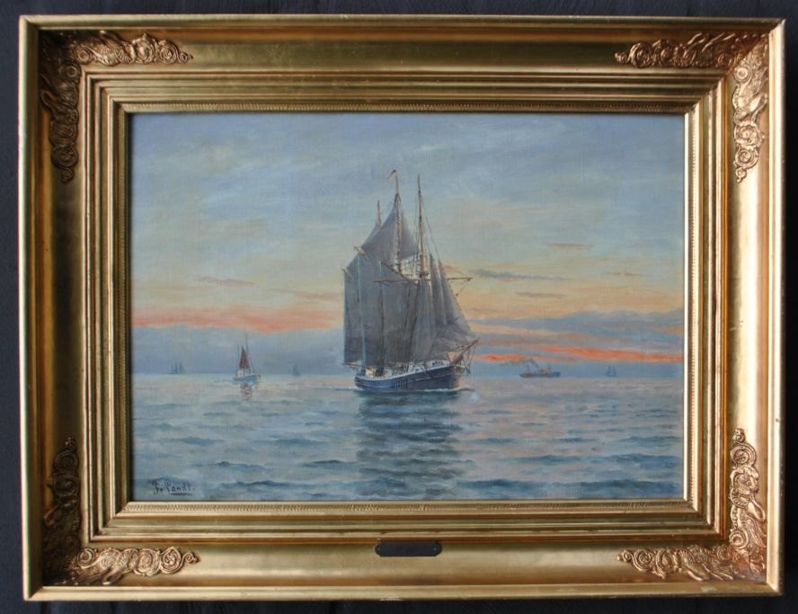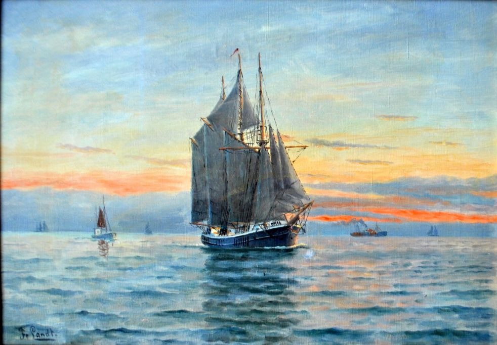 Landt, Frants (1885 - 1975) Danmark: Marine. Signeret. Olie på lærred. 36 x 51 cm.