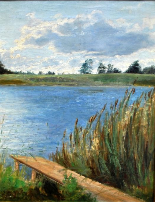 Soya-Jensen, Carl Martin (1860 - 1912) Danmark: Landskab med sø og bro.